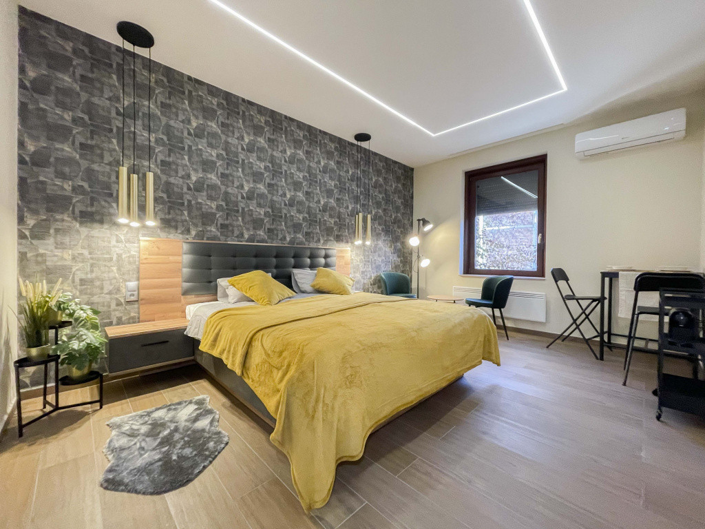 VII. ker., Kazinczy utcában igényesen és teljeskörűen felújított 30 nm-es garzonlakás a képen látható teljes bútorzattal és gépekkel (új mosógép, hűtőszekrény, mikro, kávéfőző, klíma) kiadó hosszú távra, de minimum 12 hónapra. Fűtés: elektromos panel; klíma.