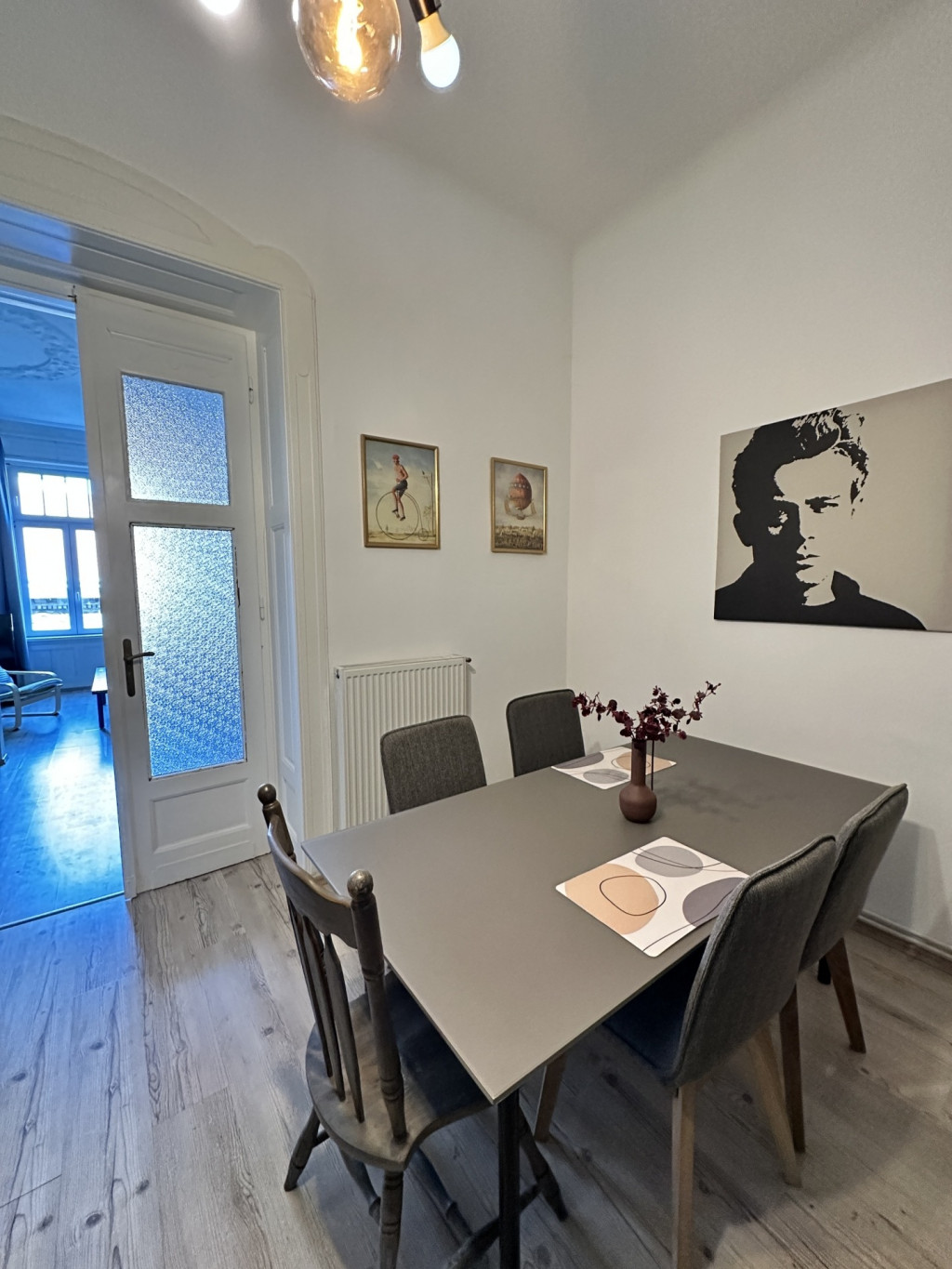 The apartment has an excellent central location in the heart of the city, close to many restaurants, shops, and public transportation options.