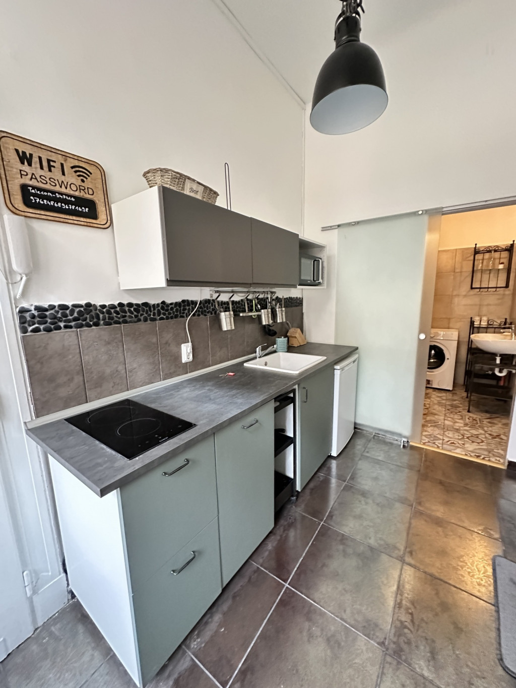 A konyha felszerelt: mosogatógép, hűtő, főzőlap és mikrohullámú sütő. A lakás klímával rendelkezik. A nagy hálószobában új matrac, a nappaliban új kanapé található.