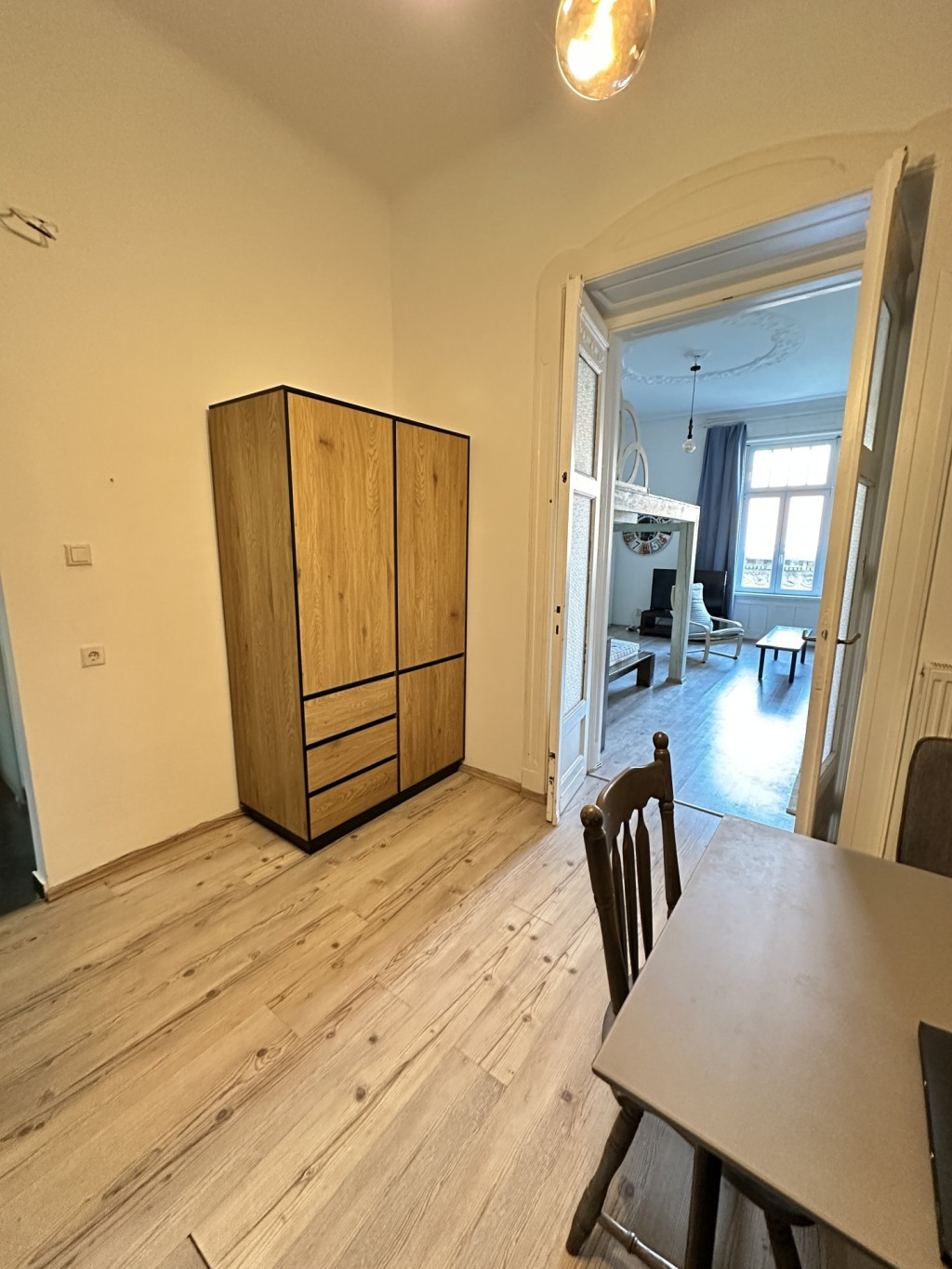 A furnished and fully equipped apartment is available for rent on the 3rd floor of a building with an elevator in Király Street, District VII, Budapest.