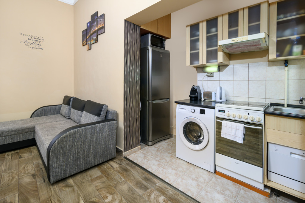 · Teljesen felszerelt konyha: mikró, gáztűzhely, mosogatógép, hűtő fagyasztóval, mosógép, kávéfőző, vízforraló, kenyérsütő, edények és evőeszközök