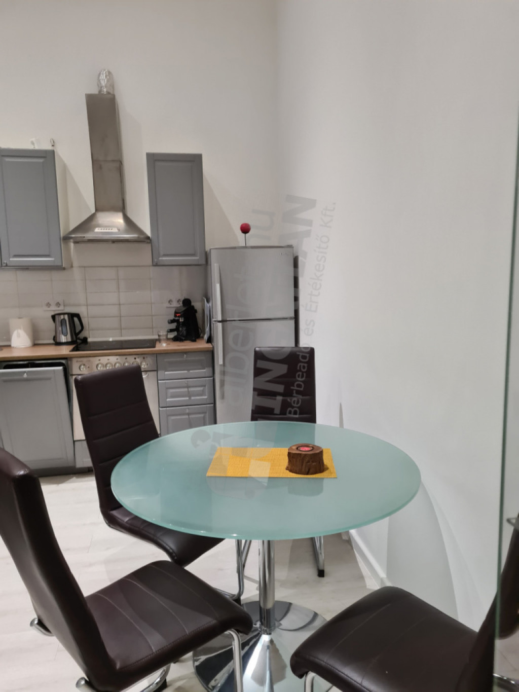 Berendezett, gépesített. Klíma, mosogatógép, mosógép, hűtő.