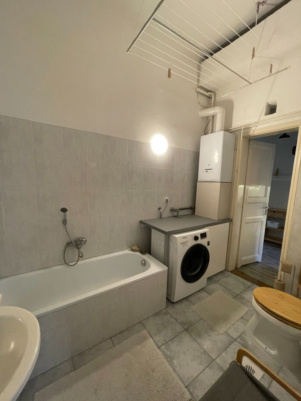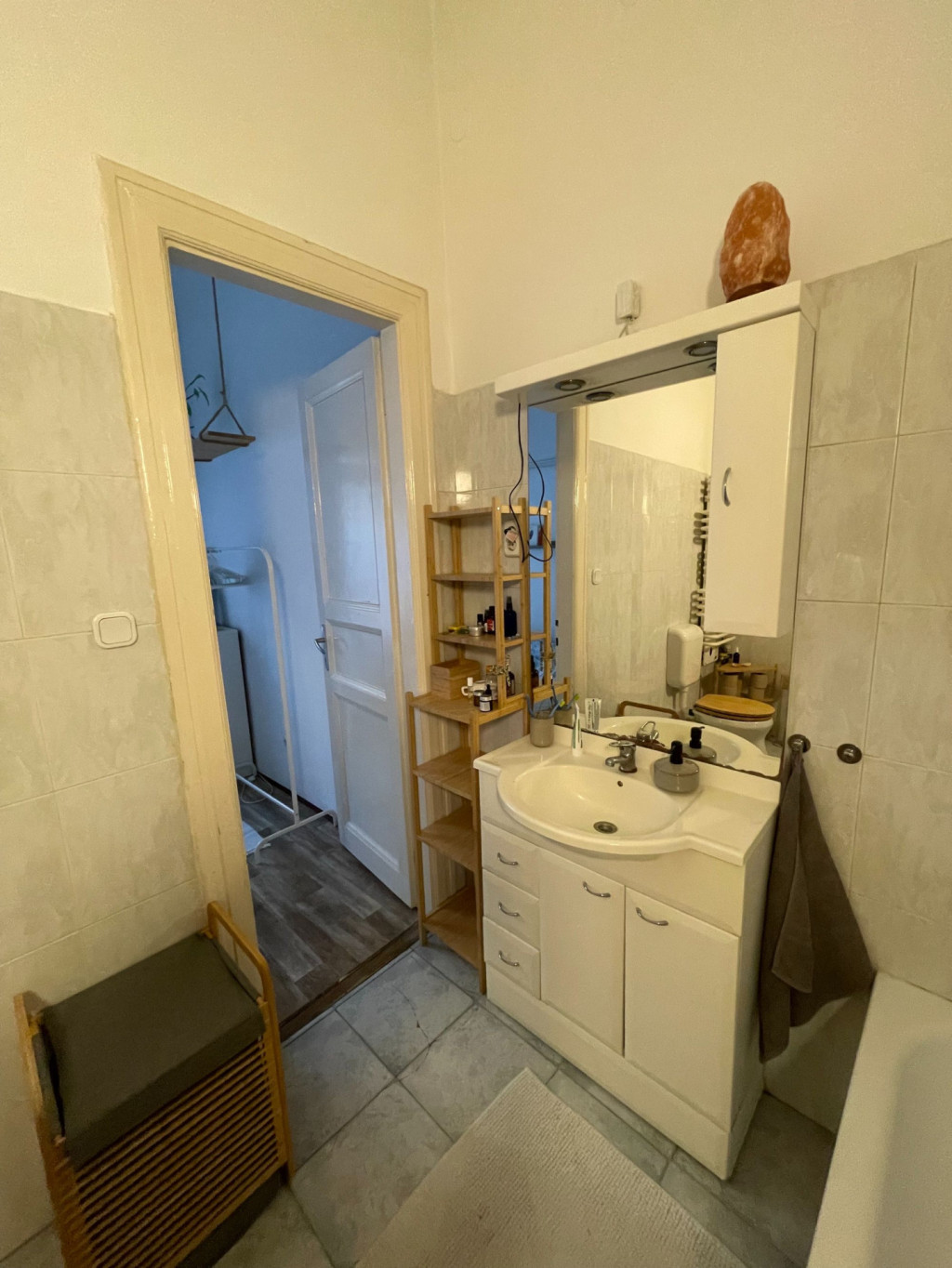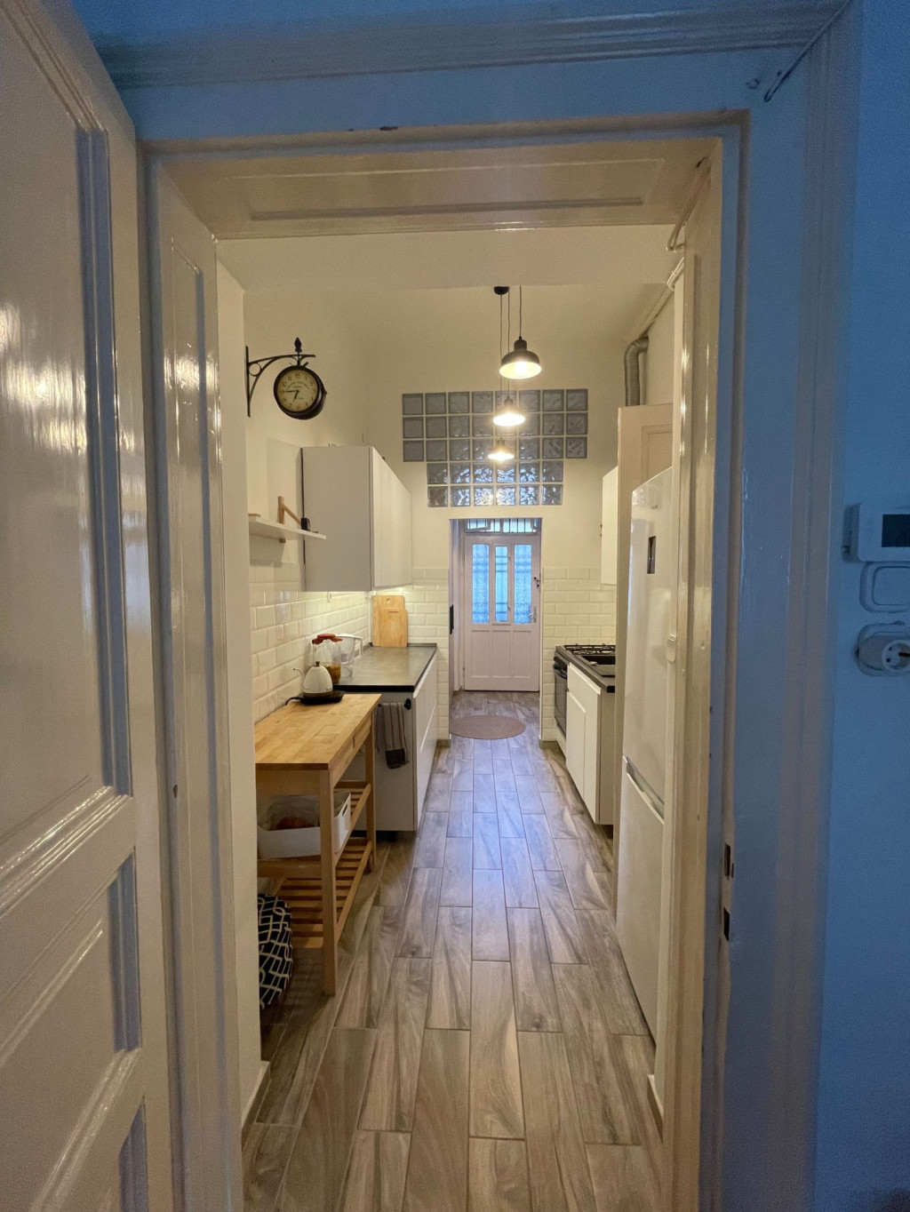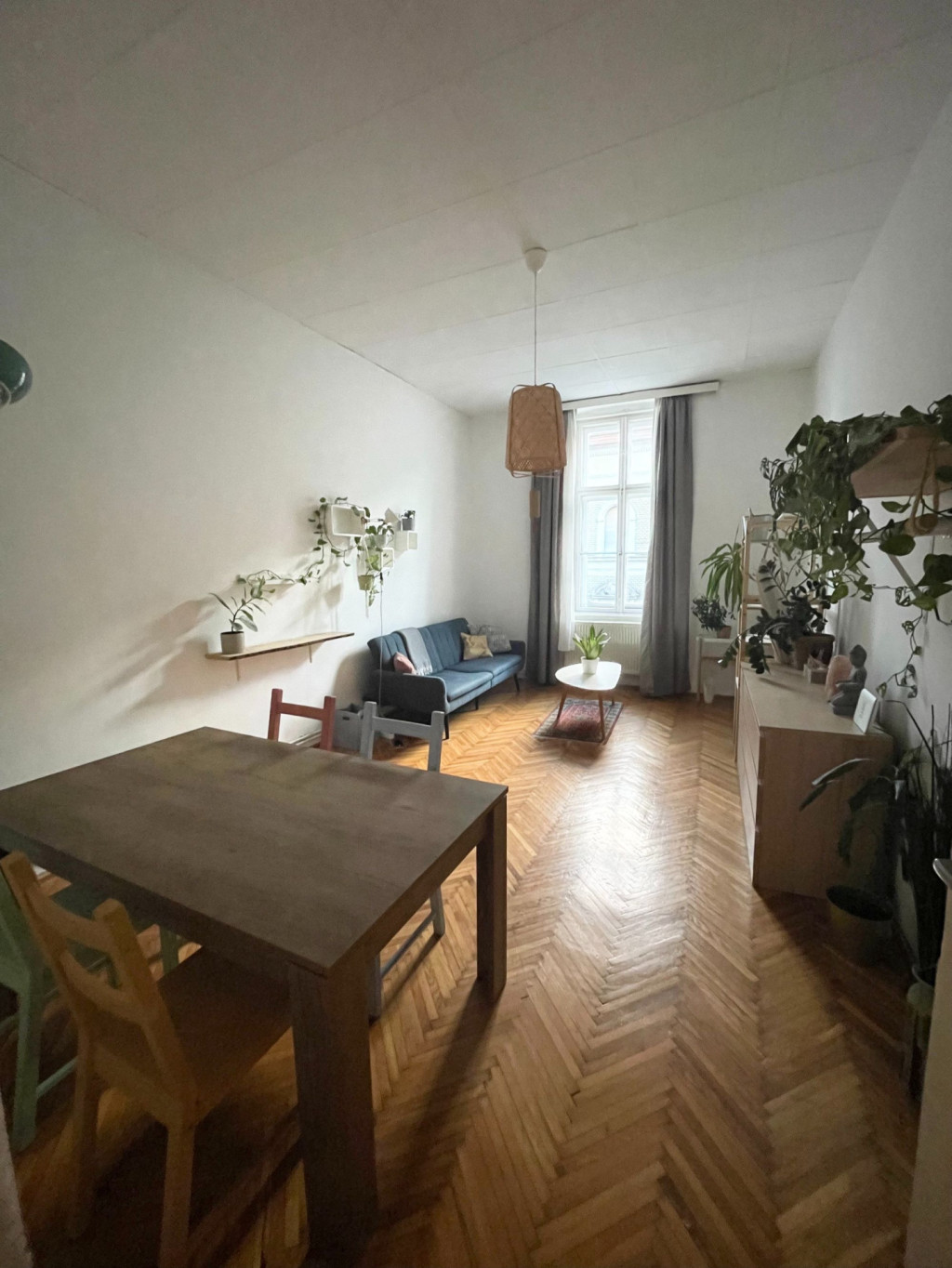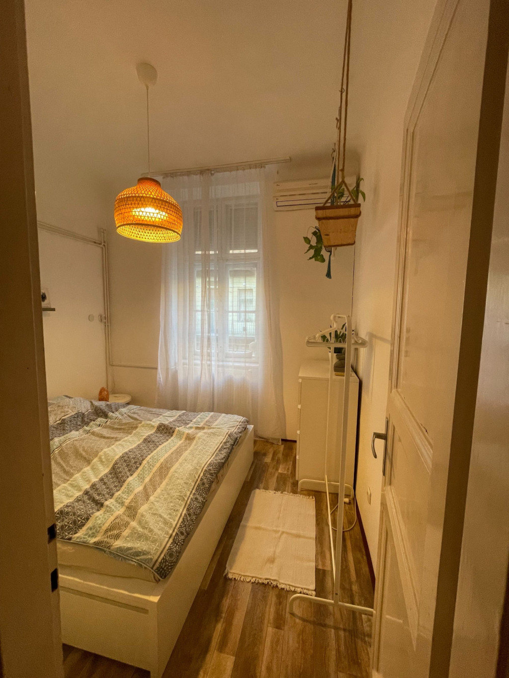 Kiadó a Keleti közelében, a Rákóczi út és a Huszár utca sarkán található társasház 3.emeletén (lift nincs) egy 48 négyzetméteres, nappali plusz hálószoba elrendezésű, teljesen felújított, gépesített és bútorozott, igényes lakás.