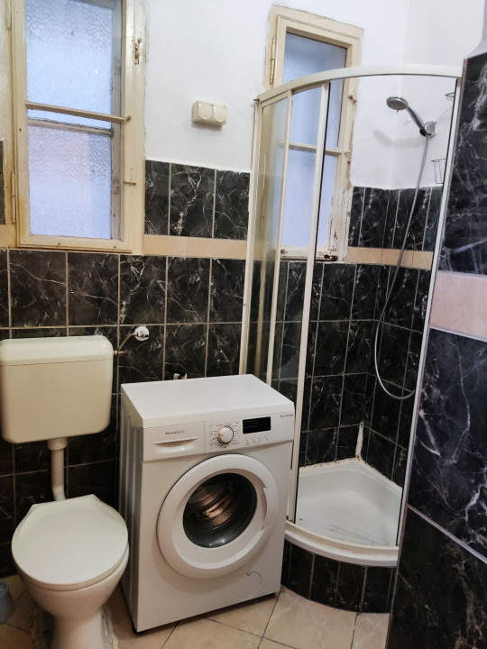 Fürdőszoba: zuhany kabin, olasz csempe és járólap, fregoli, automata mosógép.