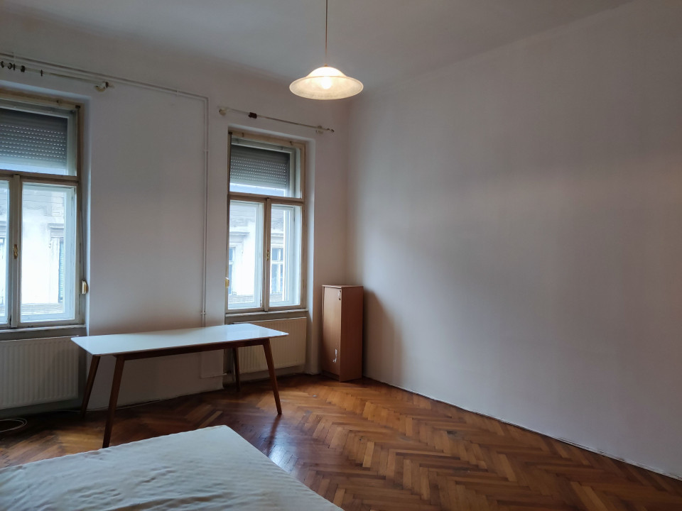 Belvárosban, VII. kerületben (belső Erzsébetváros) – Wesselényi utcai 4-6 villamos 3 perc séta, Blaha Lujza téri 2-es metró 5 perc séta, 74 troli előtte. Előtte park, játszótér, kutya futtató.