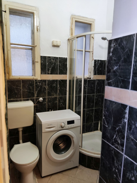 Fürdőszoba: zuhany kabin, olasz csempe és járólap, fregoli, automata mosógép.