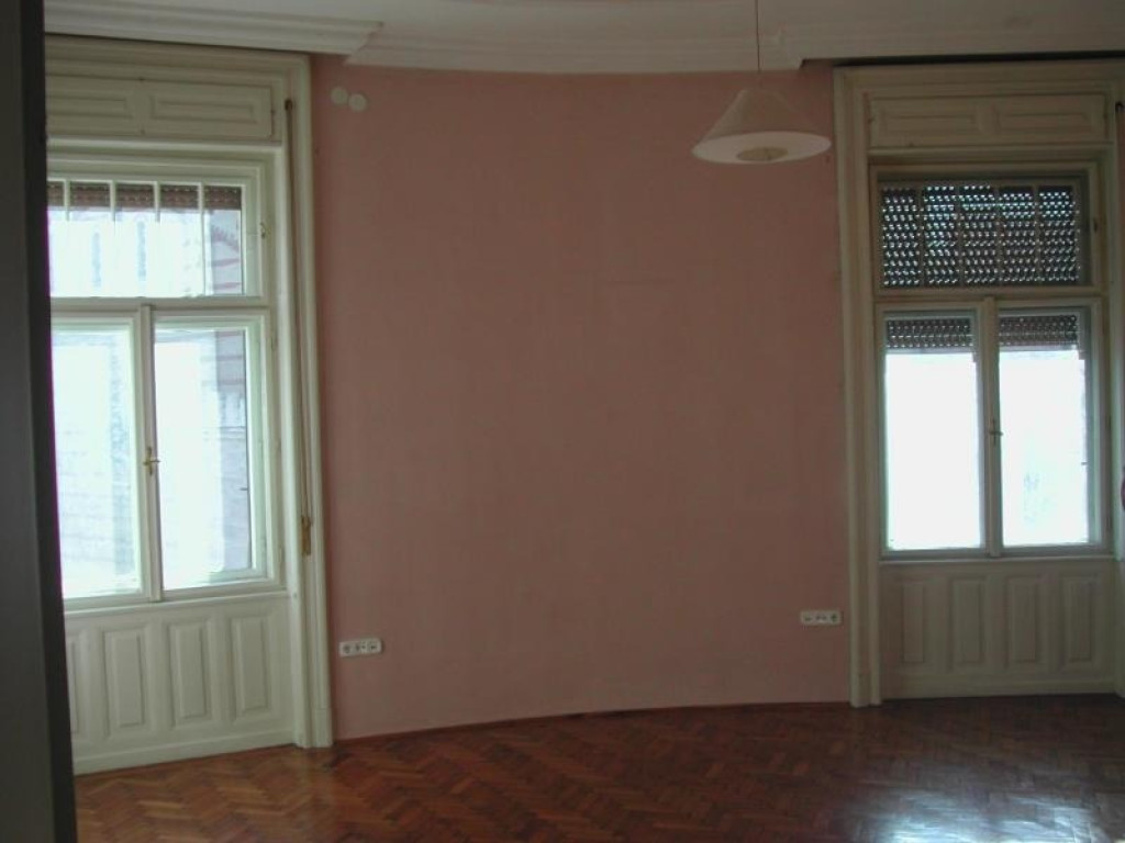 A Belső-Erzsébetvárosi Wesselényi utca Astoria felőli végénél hosszú távra kiadó egy 3 szobás, BÚTOROZATLAN, kifejezetten világos, déli tájolású lakás.