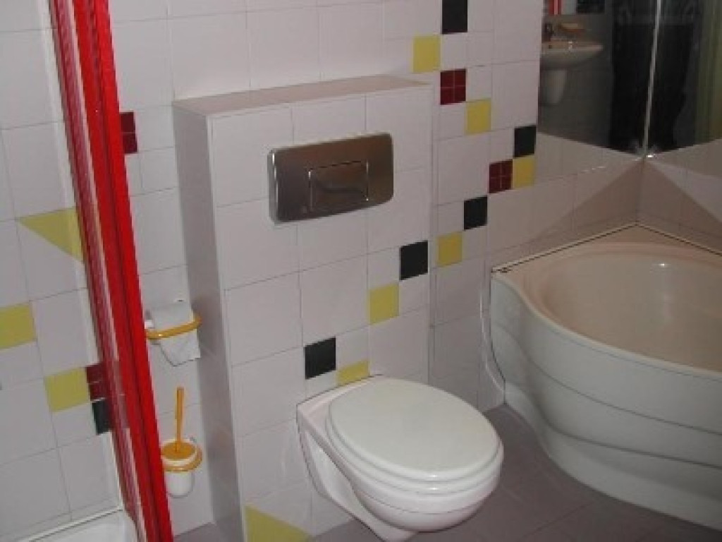 A fürdőszoba sarokkádas, WC a fürdővel egyben és külön is beépítésre került.