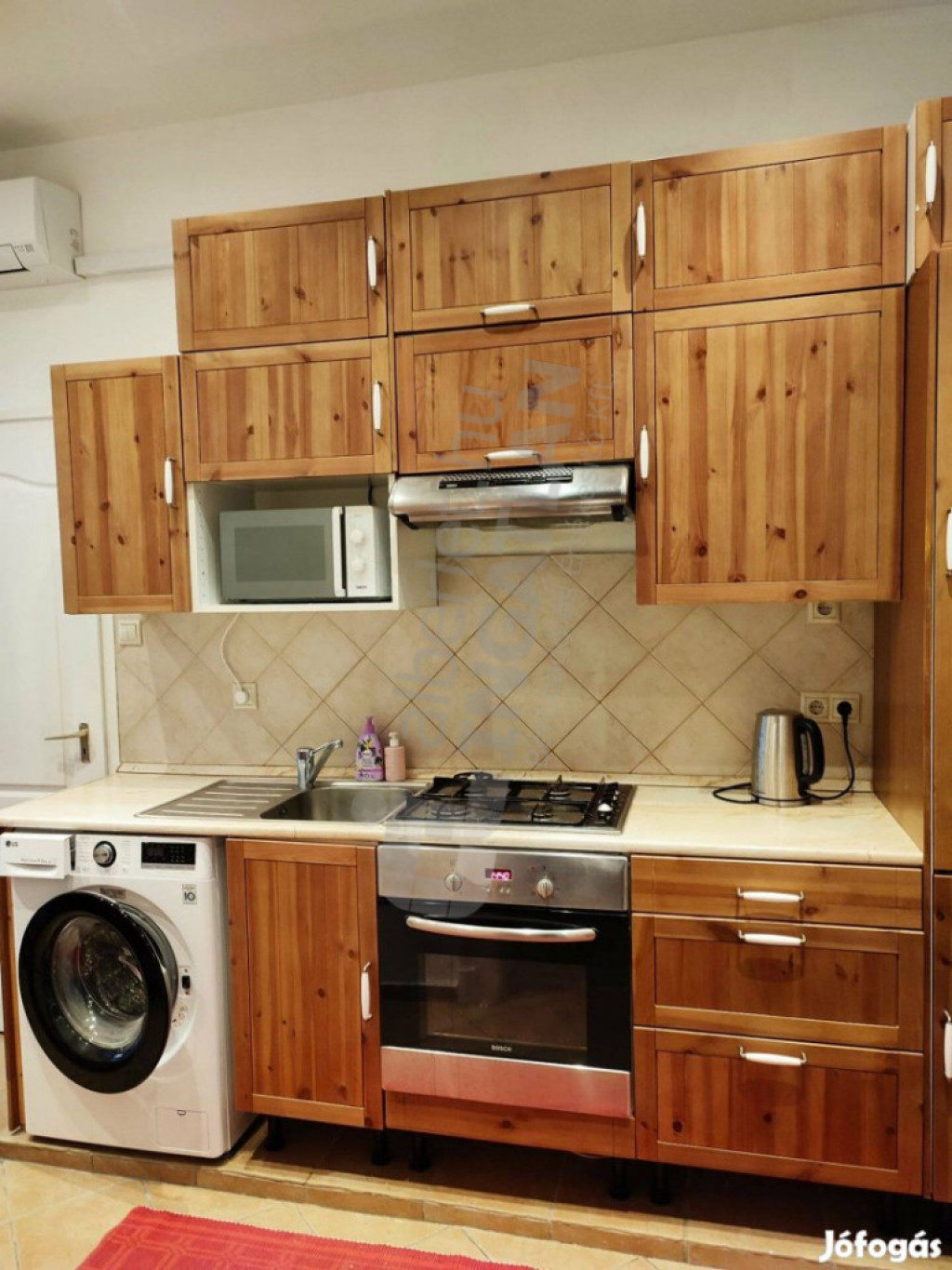 - gépesítése (sütő, főzőlap, szagelszívó, beépített hűtő fagyasztó, mikró, mosó gép)