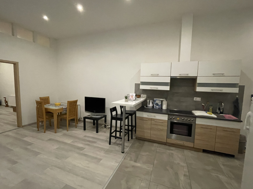 Az ingatlan elrendezése praktikus: a tágas amerikai konyhás nappaliból két külön nyíló szoba érhető el, így akár lakótársaknak is ideális választás.