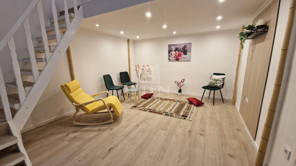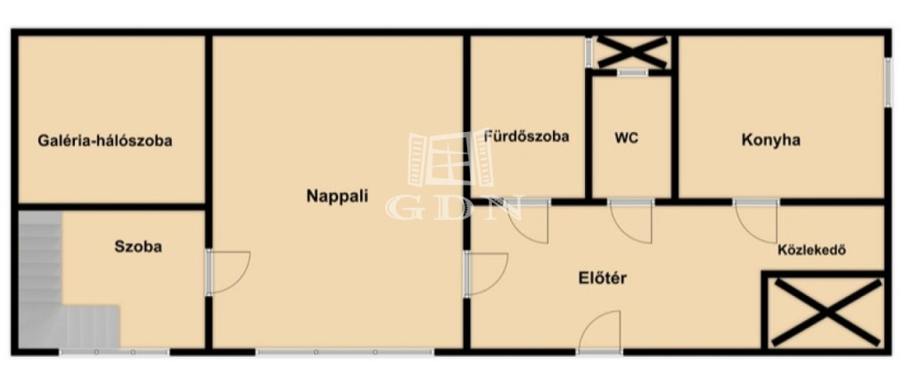 Az ingatlan tulajdoni lapon 63 m2, de a hasznos alapterülete több, mint 75 m2, mivel a nagy belmagasságnak köszönhetően az egyik szobában teljes értékű állógaléria került kialakításra.