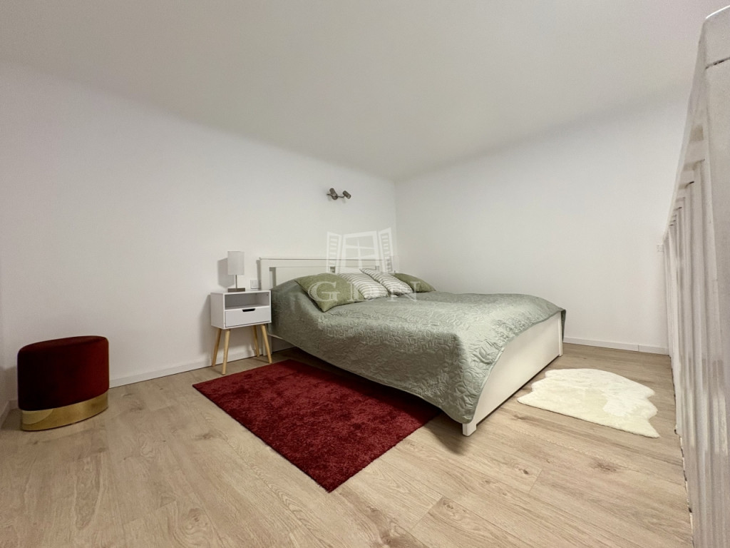 - Szintén impozáns méretű lakó szoba, amely fölött került kialakításra a teljes értékű hálószoba