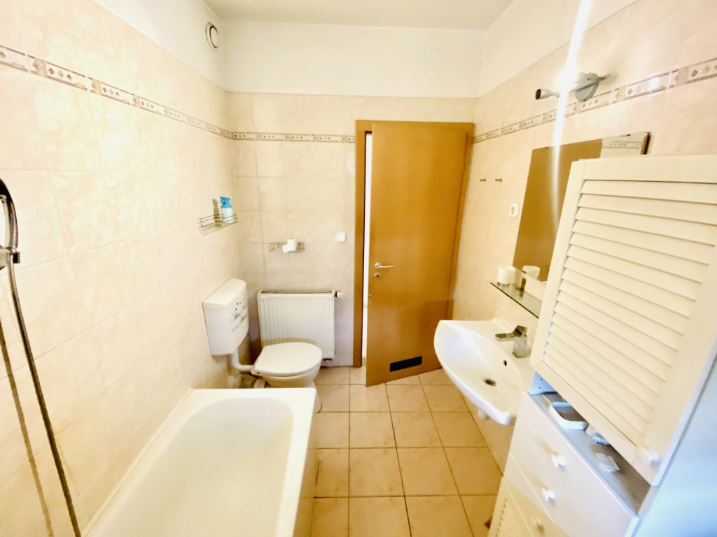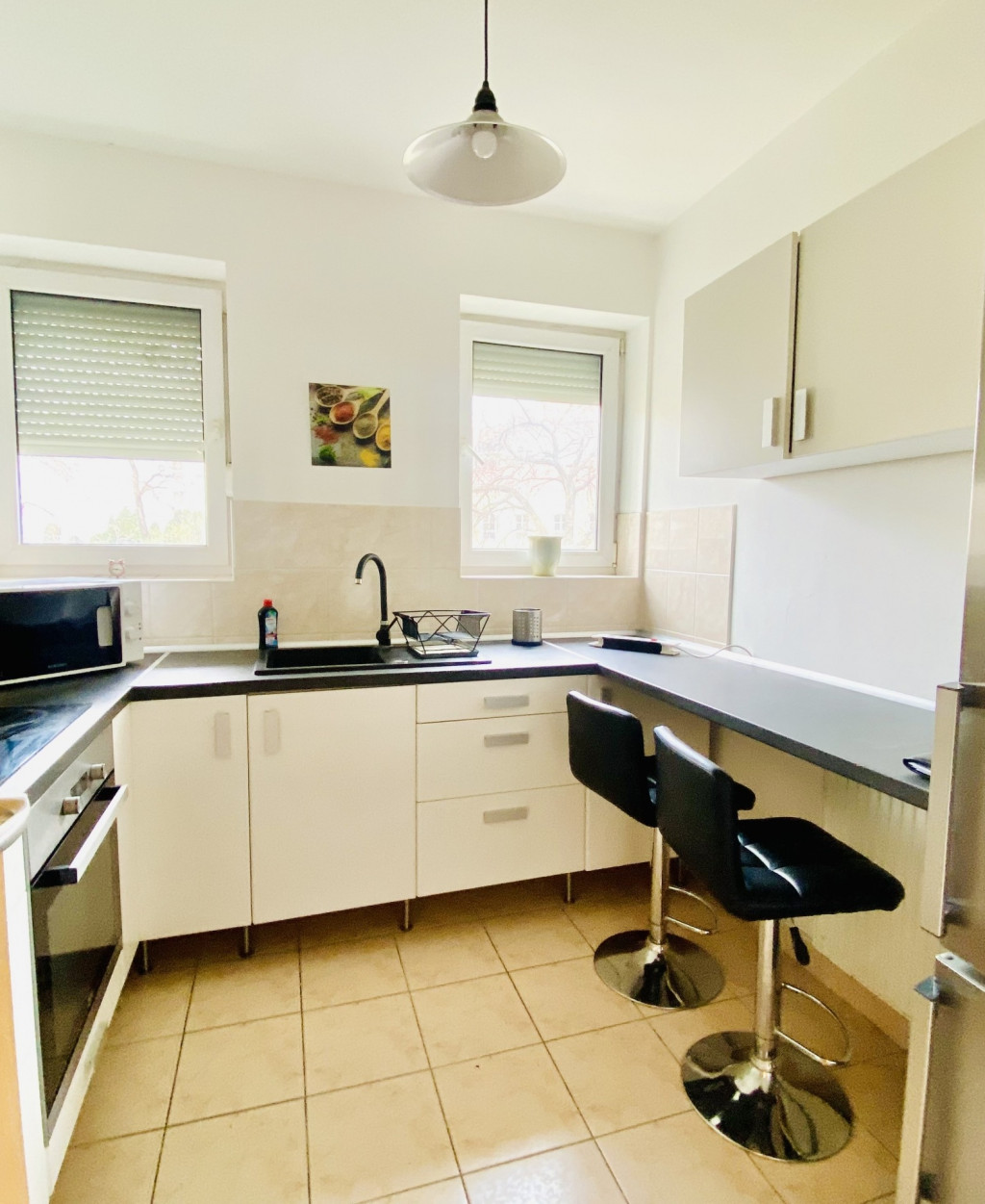 1 tágas szoba (21 m²), külön konyha, kádas fürdőszoba.