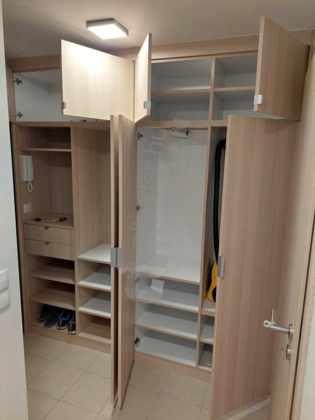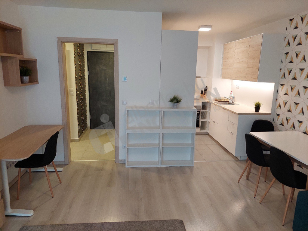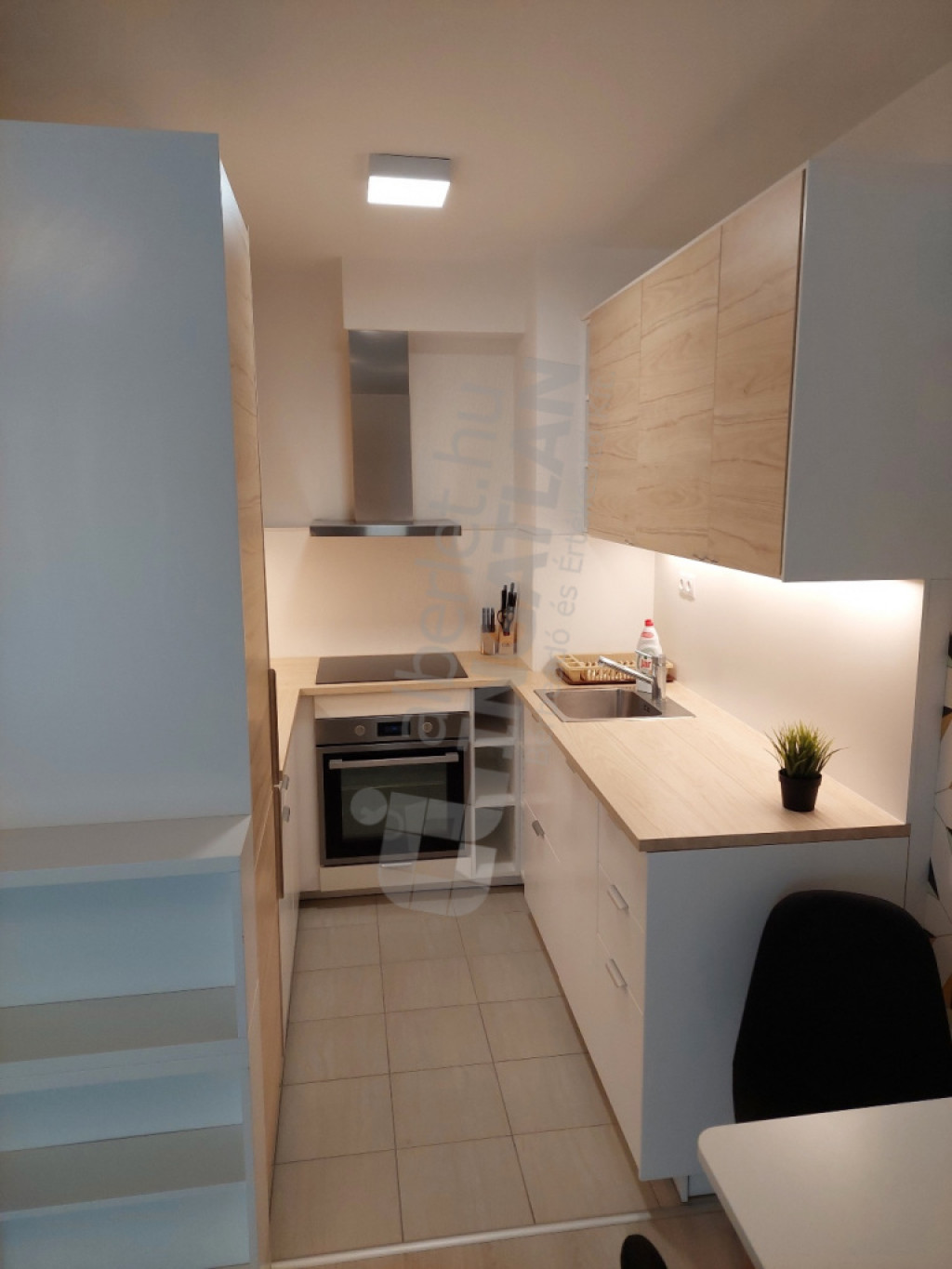 teljesen berendezett modern IKEA bútorokkal, beépített szekrényekkel, sok tárolóhellyel