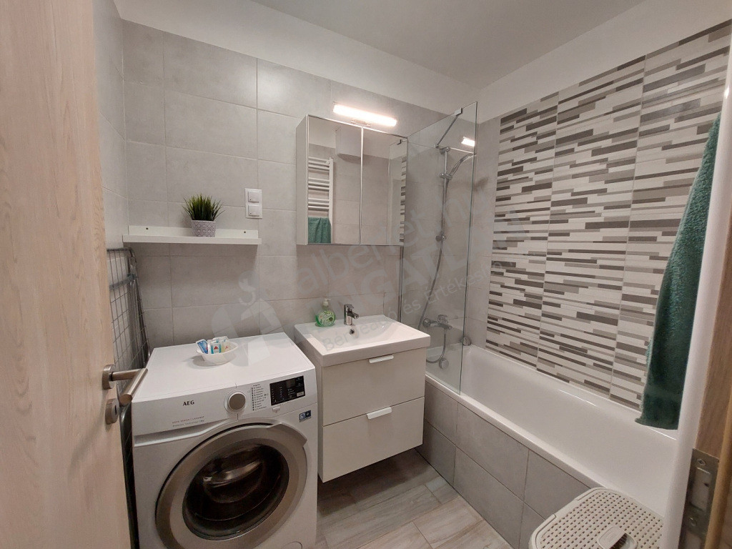 A lakás teljesen berendezett és gépesített, alap használati eszközökkel felszerelt – a leendő bérlőnek csak a személyes holmiját kell hoznia. Parkoló és tároló a ház teremgarázsában igény szerint bérelhető.