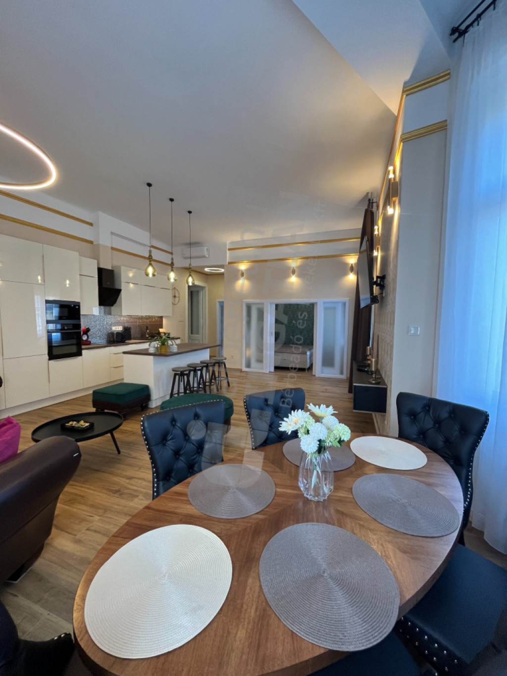 A lakás egy patinás, liftes téglaépület harmadik emeletén található, elegáns belmagassággal és nagy ablakokkal, melyeknek köszönhetően a terek rendkívül világosak és levegősek. A lakás teljes körűen felújított, megőrizve a polgári építészet hangulatát, miközben modern, kényelmes otthont kínál. A gépesített, beépített konyha minden szükséges eszközzel felszerelt, a gáz-cirkó fűtés és a légkondicionáló pedig egész évben kellemes hőmérsékletet biztosít.
