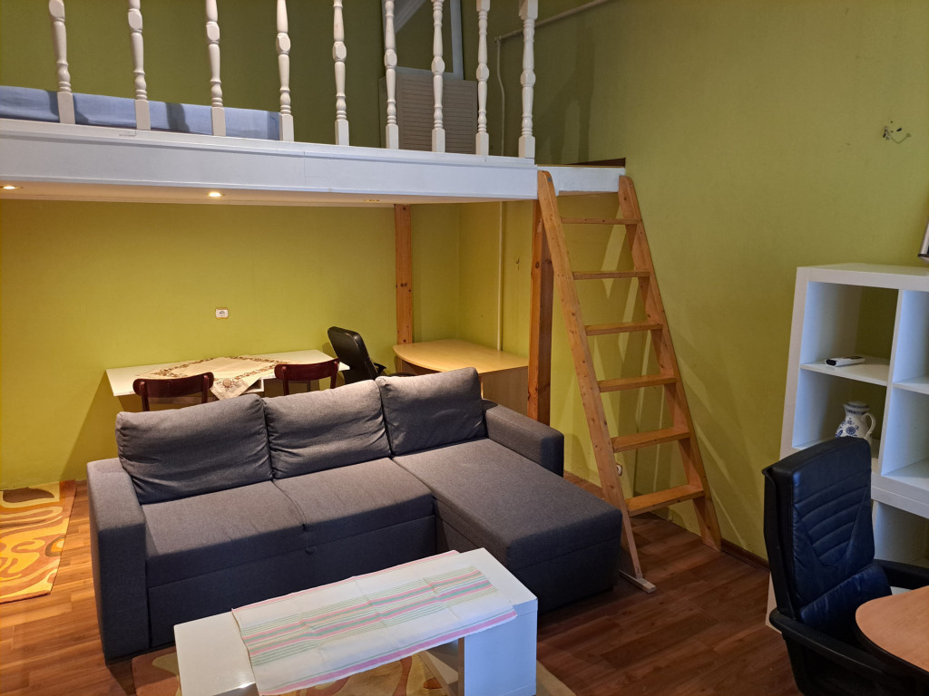 A József körúton kiadó egy lift nélküli társasház 2.emeletén található, 31 négyzetméteres, belső udvarra néző, teljesen gépesített és bútorozott, galériás lakás.
