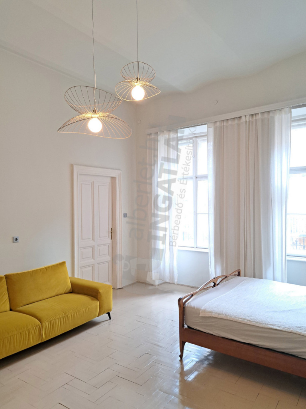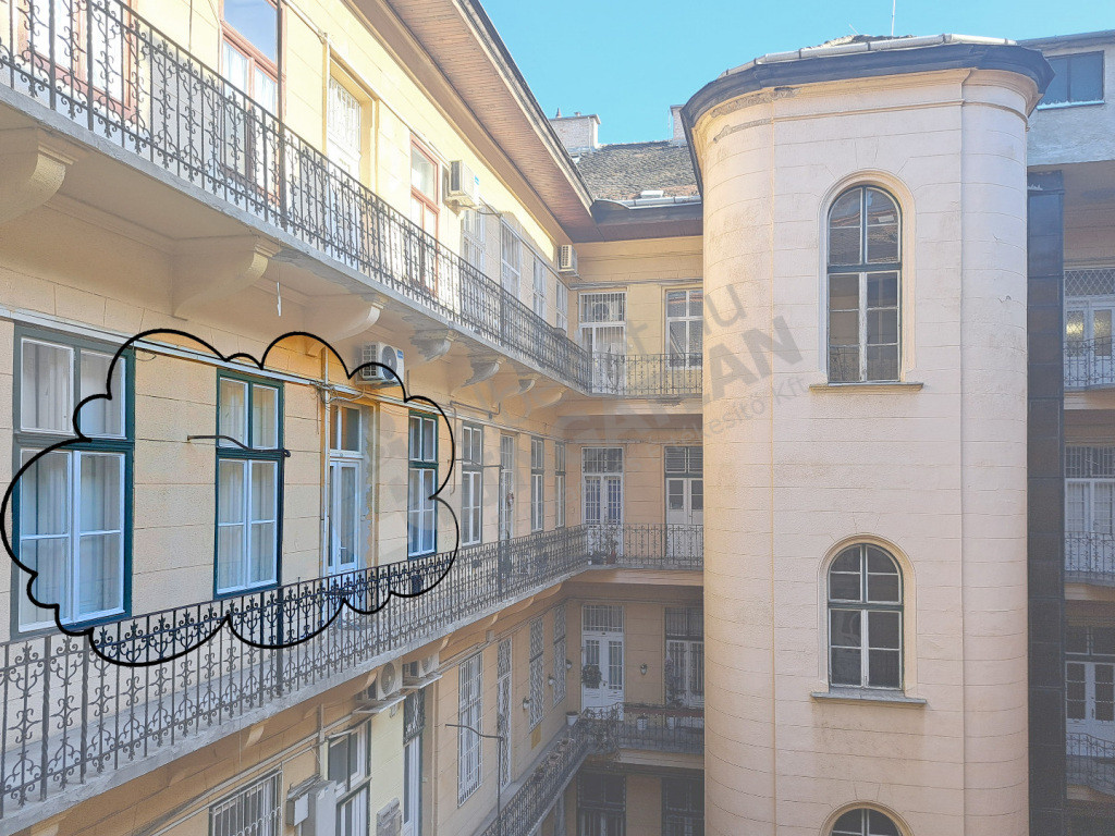 József körúton, Budapest egyik legkedveltebb részén kiadó egy 47 m²-es, déli fekvésű, napfényes lakás liftes ház 3. emeletén.