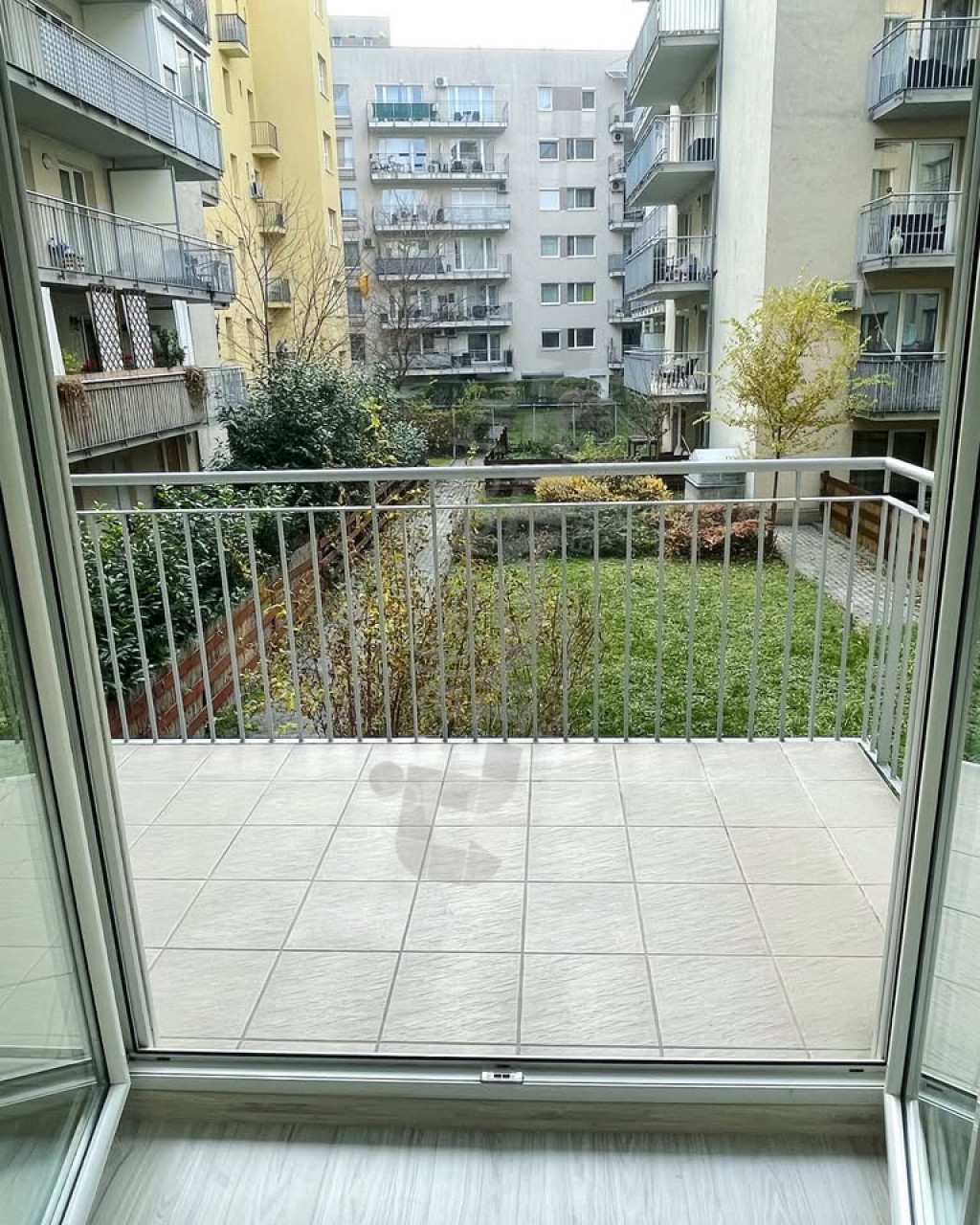A lakás 37 nm-es, 1 szobás első emeleti, a kilátás a ház kertjére nyílik.