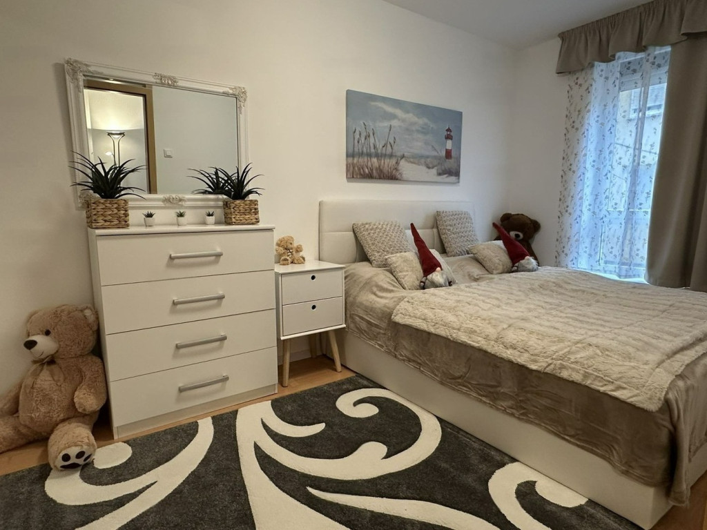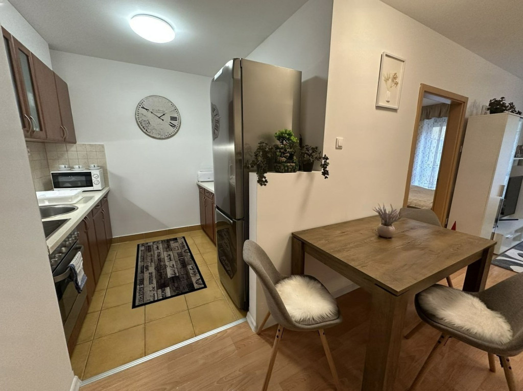 A lakás 2 SZOBÁS (tágas nappali + külön háló), TELJESKÖRŰEN BÚTOROZOTT ÉS GÉPESÍTETT. A kényelmet home office-ra alkalmas íróasztal, streamelésre kész smart TV, hatalmas tükrös szekrények és KLÍMA (tavaszi beszereléssel) biztosítja. A rezsi rendkívül kedvező, a házközponti fűtés és melegvíz a közös költség részét képezi. Külön előny, hogy a bérlés SZÁMLAKÉPES, és már 1 HAVI KAUCIÓVAL foglalható.
