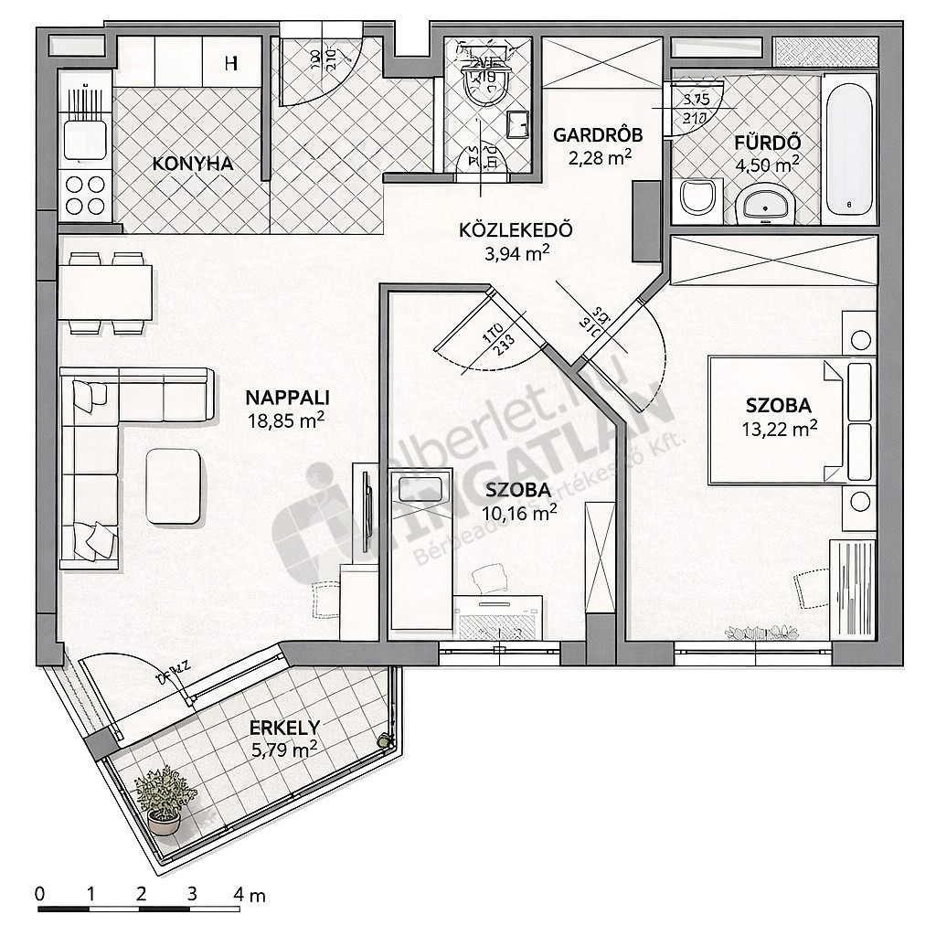 - beköltözhető 2 havi kaució + 1 havi bérleti díj megfizetése + közjegyzői nyilatkozat aláírása után