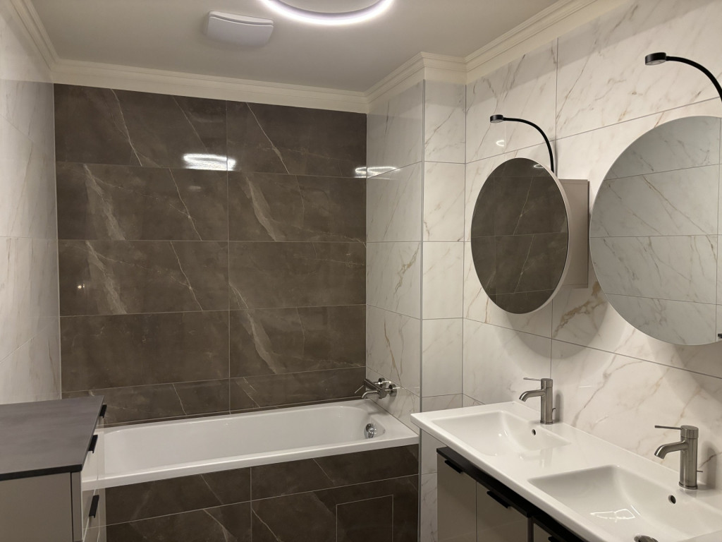 Előszoba, 4 külön bejáratú szoba, amerikai konyhás nappali, dupla mosdós, kádas fürdő szoba külön WC-vel.