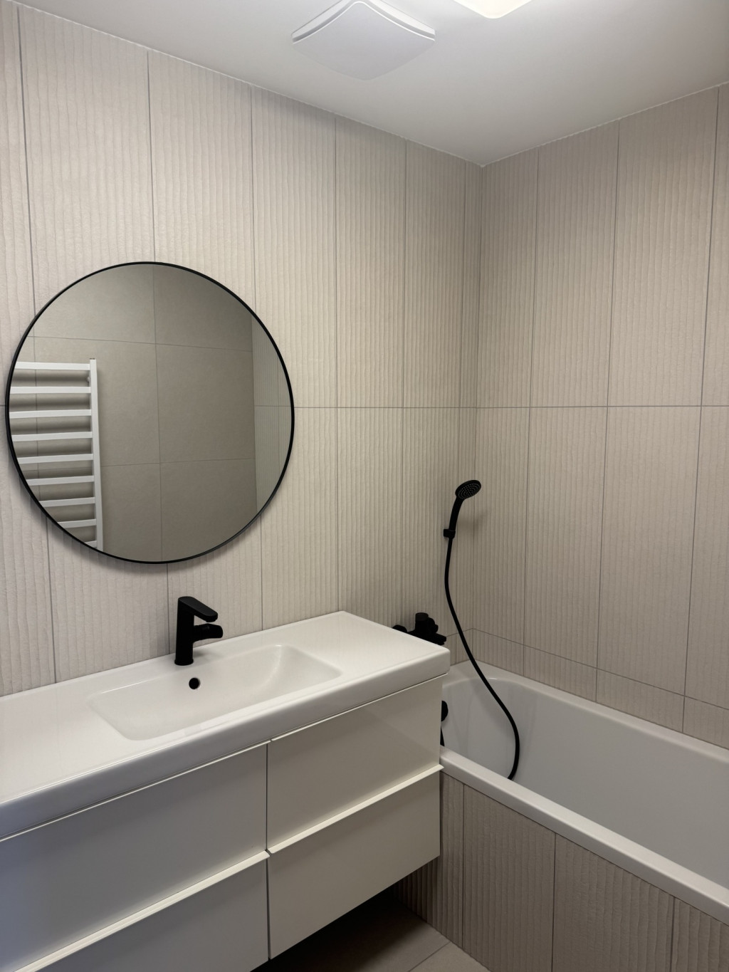 Továbbá 2 külön fürdőszoba (1 zuhanyzós, 1 kádas) és mosókonyha is kialakításra került.