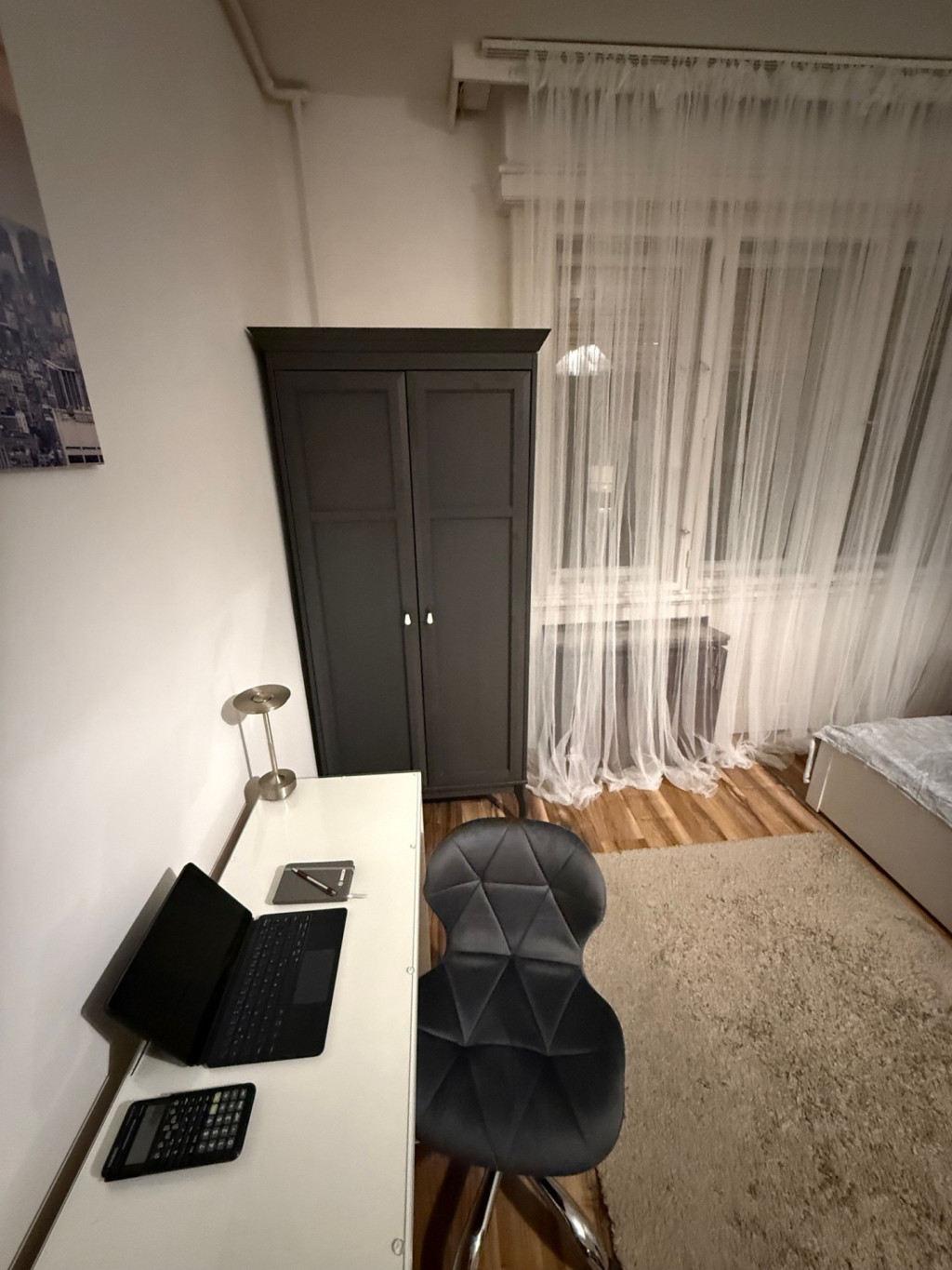Modern bútorok: Andante kanapé, franciaágy, TV, szekrények, íróasztal, étkezőasztal. REDŐNY és 1000 Mbps optikai internet elérhető.