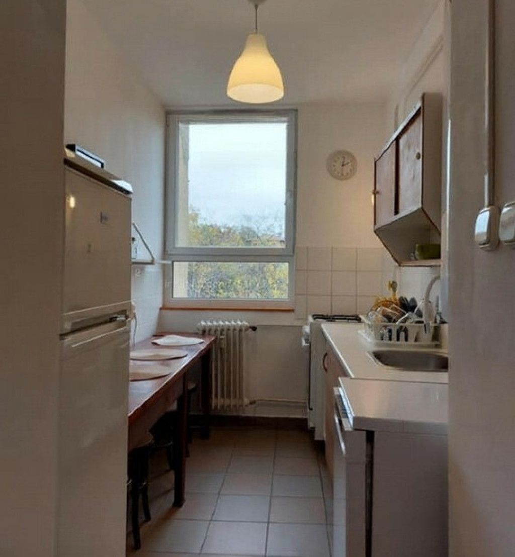 A lakás gépesített - a konyhában mosogatógép, gáztűzhely,