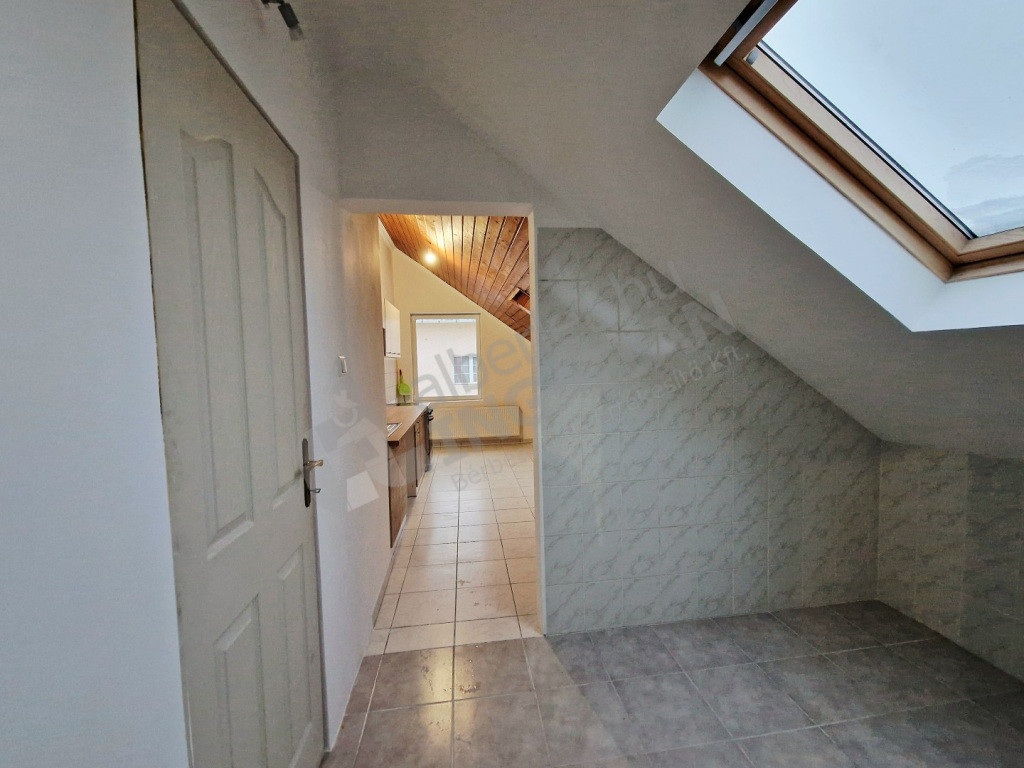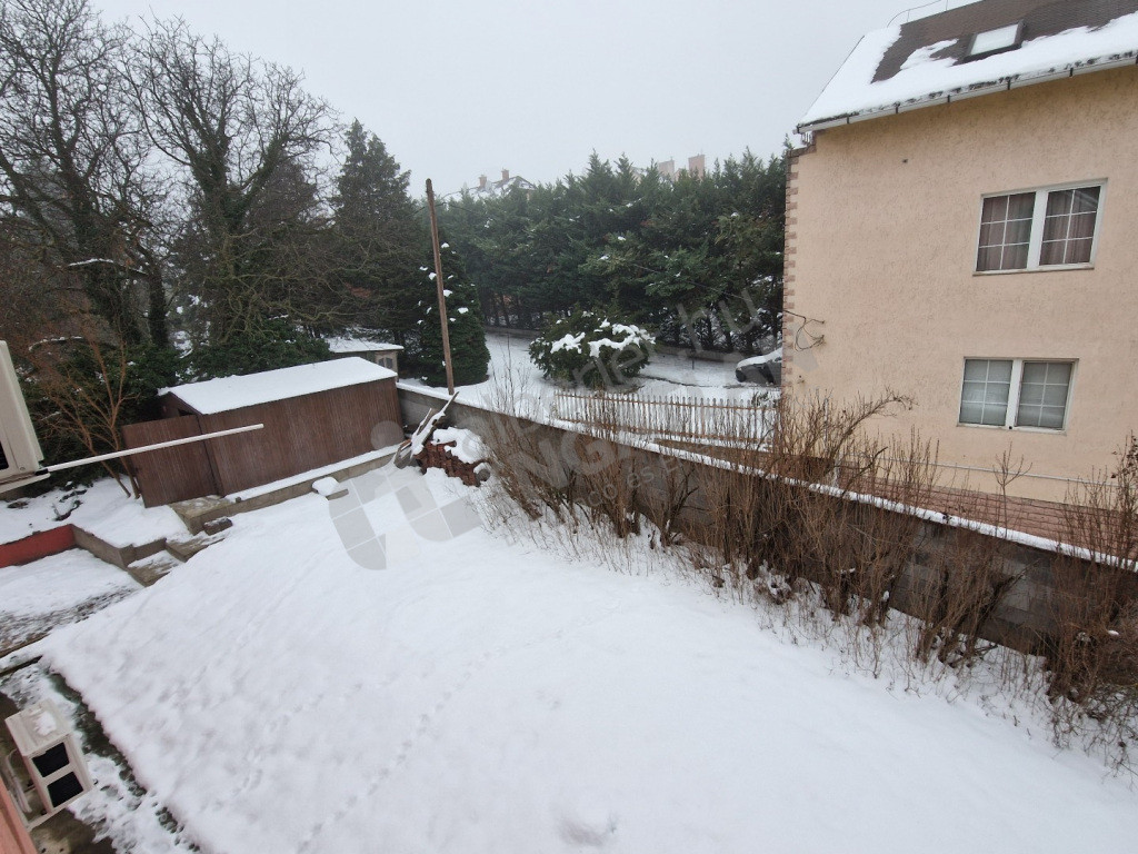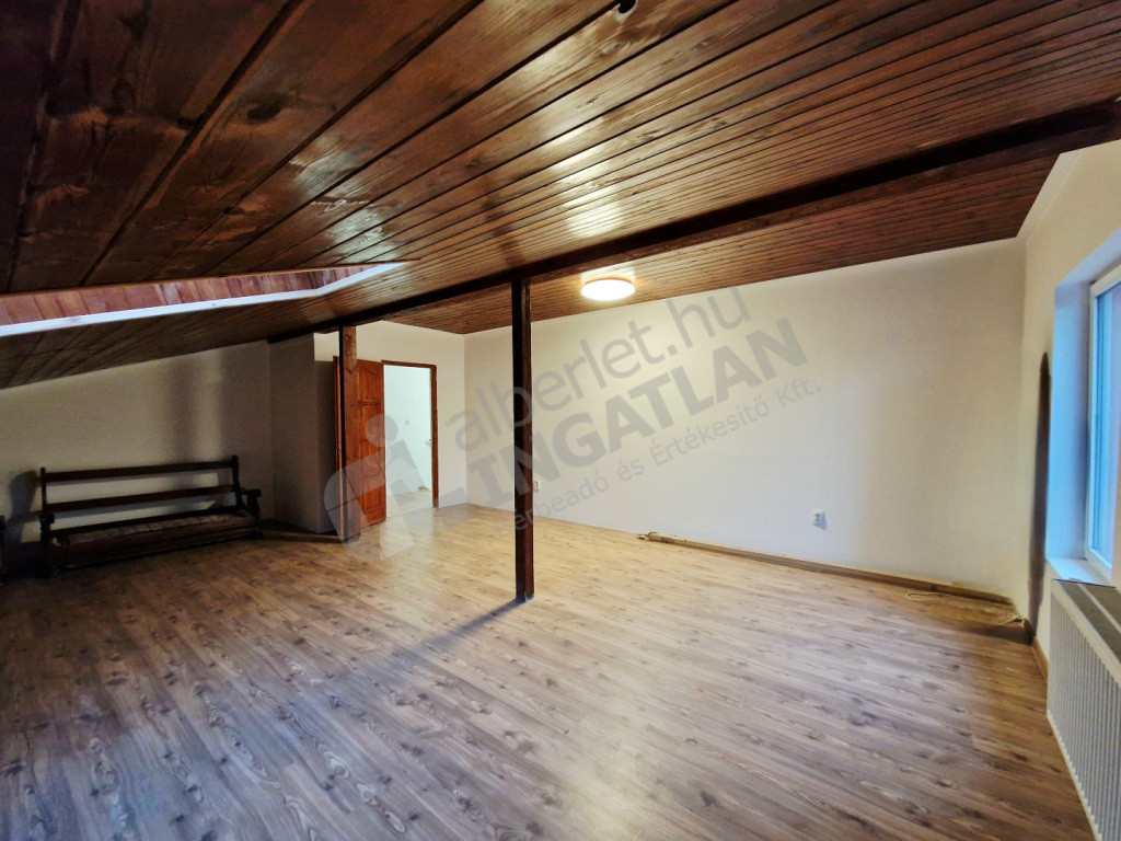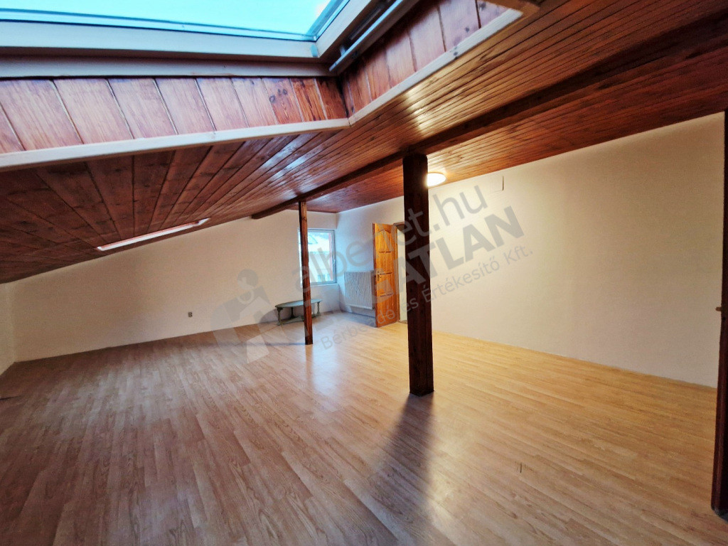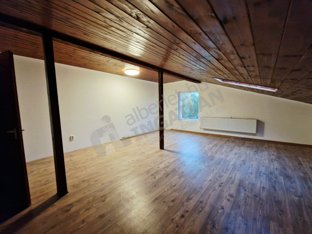 A lakás egy családi ház legfelső szintjén, leválasztva található. Kertből nyíló lépcsőn közelíthető meg.