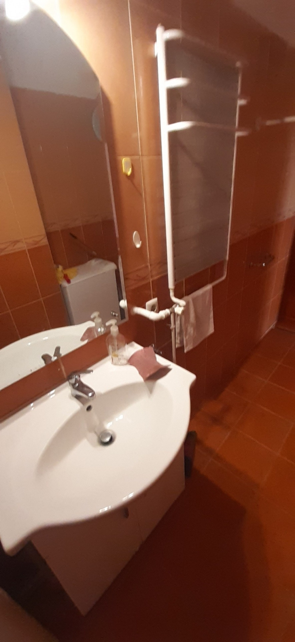 A 3 szobából 2 külön, egy a nappaliból nyílik. A fürdőszoba és a wc külön helyiségben található. A fürdőben mosógép, a konyhában bépített gépek állnak rendelkezésre gáz főzőlappal.