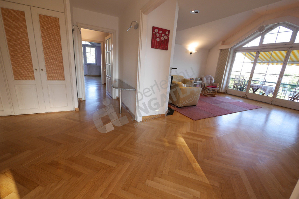 Három külön nyíló hálószoba, két fürdőszoba, konyha, tágas ebédlő.