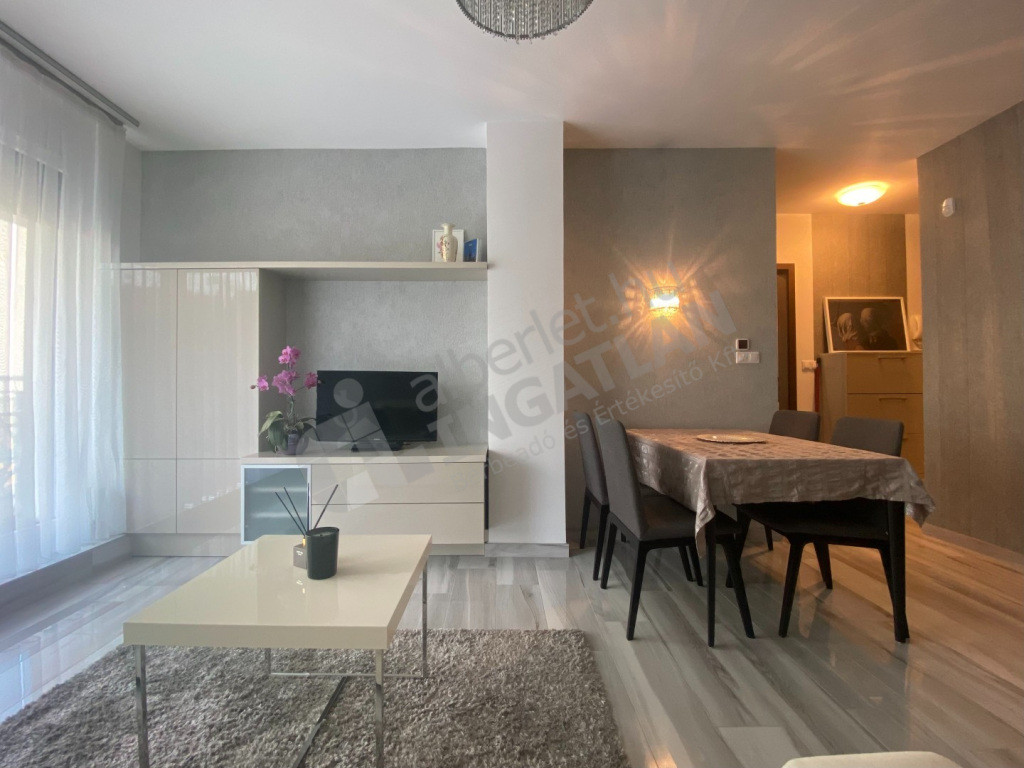 A Rahó- kert lakóparkban, elegáns, csendes, első emeleti lakás, bútorozottan, gépesítve kiadó. Az ingatlan
