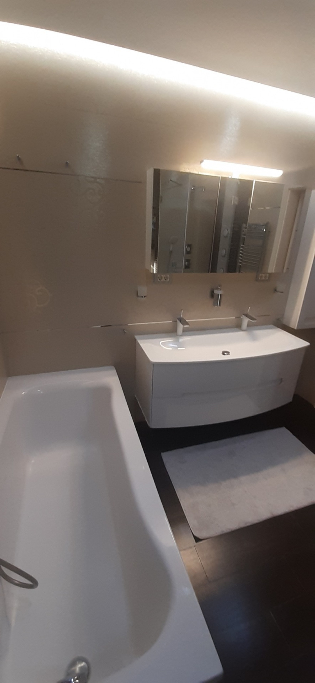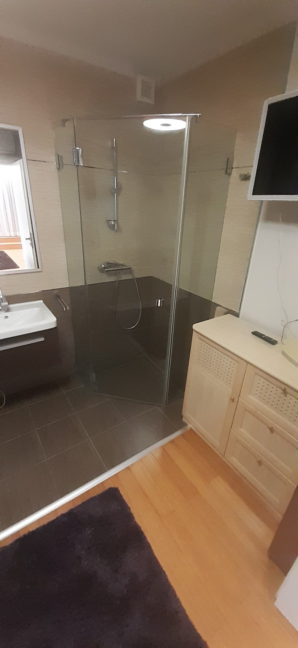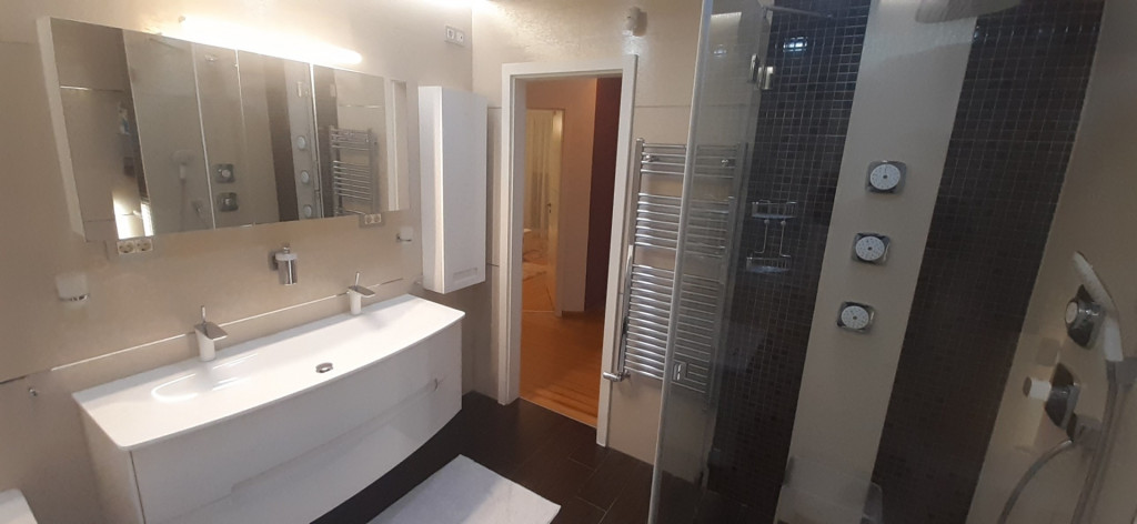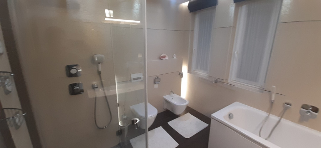 Duplakomfortos - 2 fürdő (távirányítós zuhanykabinnal és káddal egyaránt) + 1 külön wc kézmosóval lett beépítve prémium minőségű szerelvényekkel,