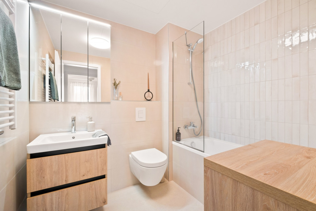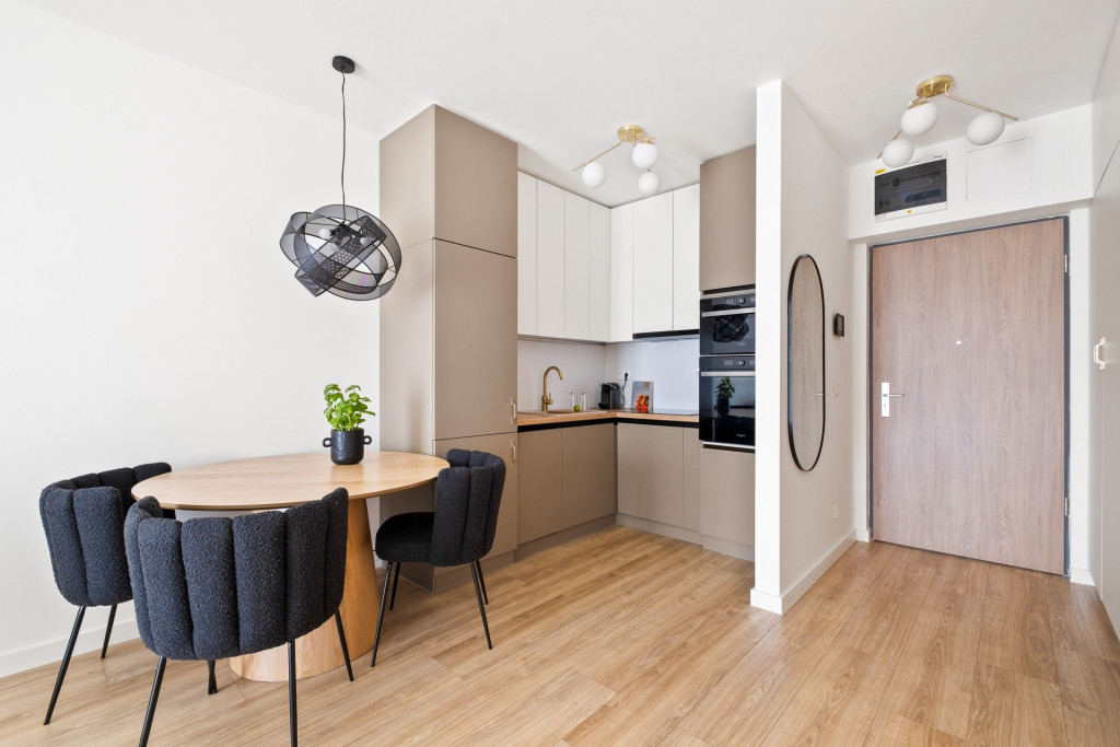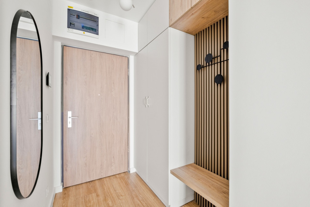 The 45 m2 property has a living room with kitchen, a bedroom, a bathroom, a storage and a 10 m2 balcony. The apartment has 3-layer windows, heat pump cooling and heating, premium materials and furniture.