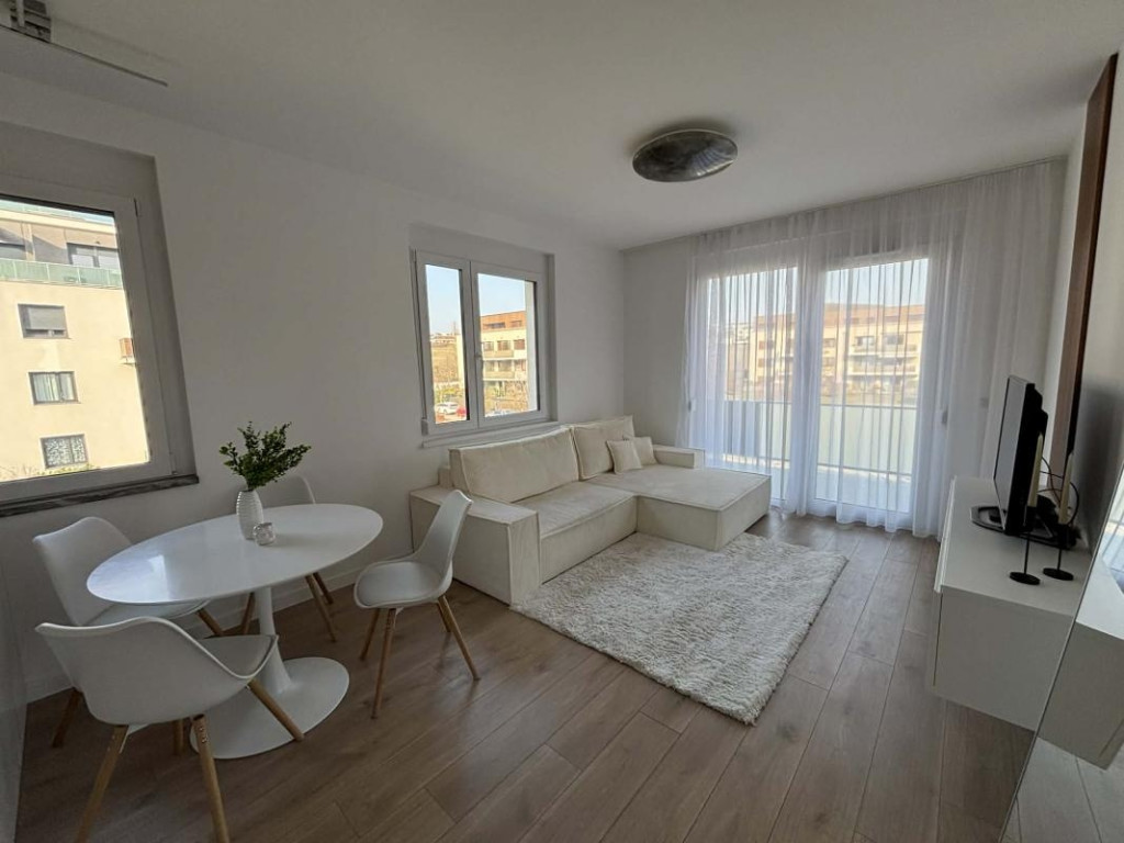 A lakás 43 négyzetméteres, praktikus elosztású: amerikai konyhás nappalival és egy külön nyíló hálószobával rendelkezik. A terek világosak és jól kihasználhatóak. A nappaliból nyílik az erkély.