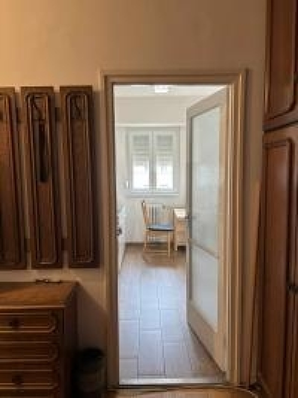 A lakás ablakai bár a forgalmas utcára néznek, mégis csendes és világos.