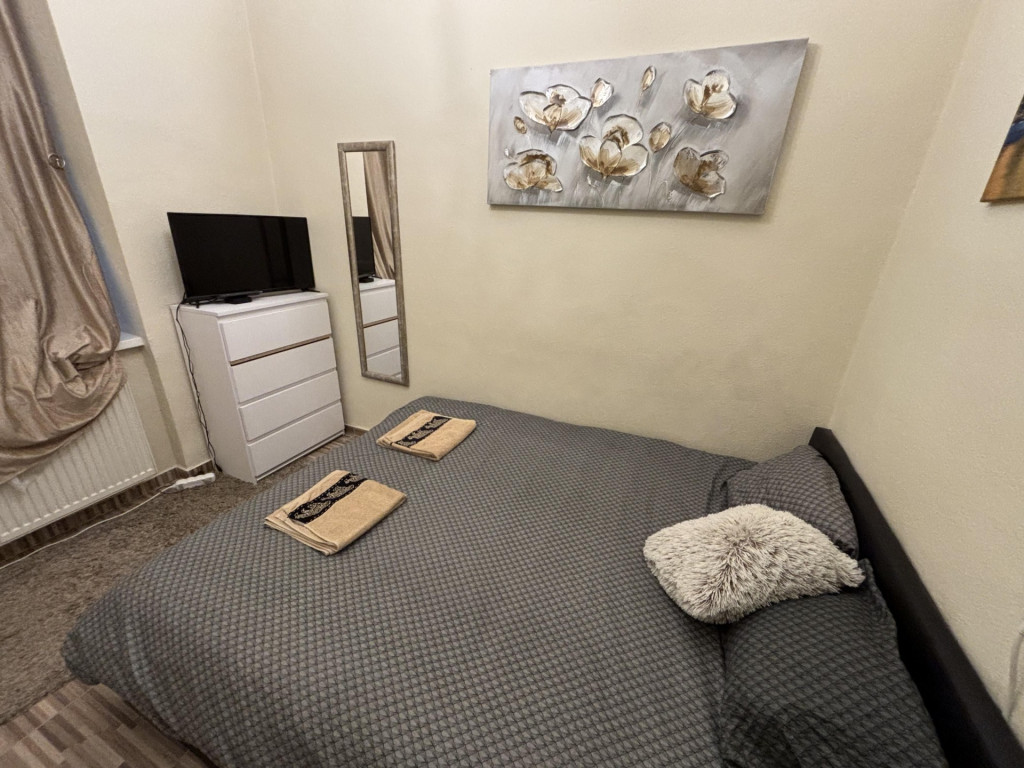 Tágas nappali és hálószoba, GARDÓBRSZEKRÉNYEK, minden helyiségben TV.