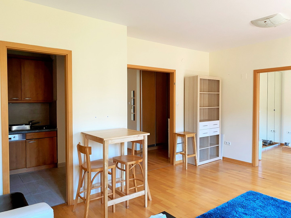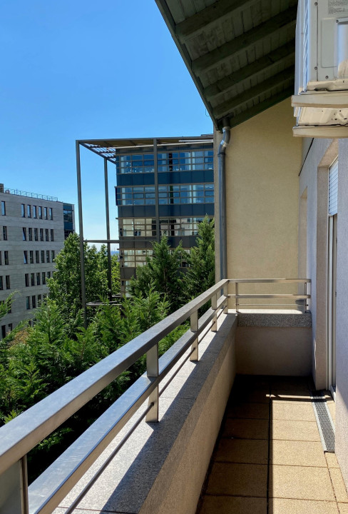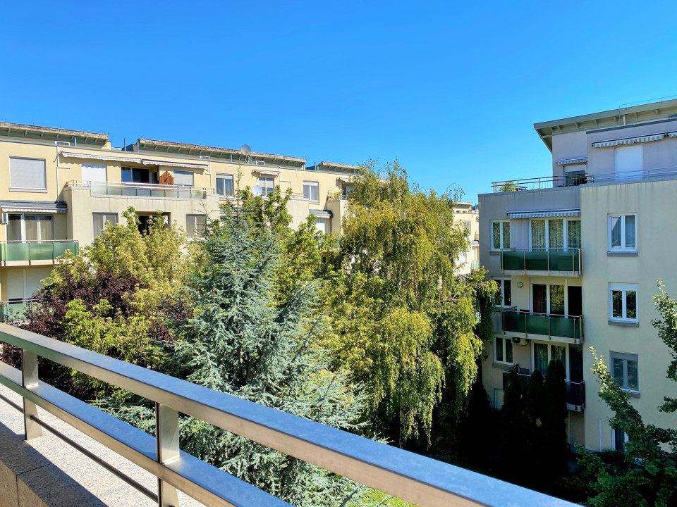 District 12 of Budapest, in the heart of Southern Buda, Németvölgy, MOM-Residential Park, 3rd-floor of the building located in the RESIDENTIAL PARK surrounded by GREEN GARDEN, EXCLUSIVE 2 ROOMS (21 sqm living and dining room area + 11,3 sqm bedroom) approx. 51 sqm SUNNY and AIR-CONDITIONED LUXURY APARTMENT, with PANORAMIC TERRACE (approx. 5,2 sqm) opening from living room and bedroom, for RENT.