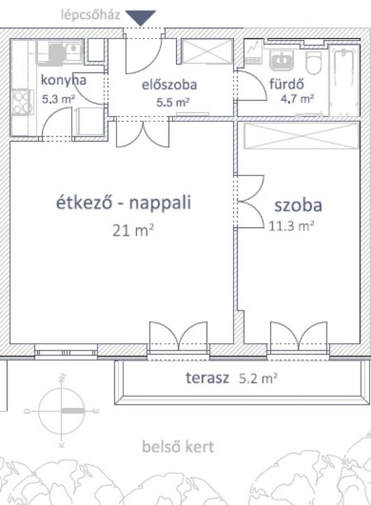 - természetes fénnyel megvilágított tágas lakóterek, a külső nyílászárókon redőnyökkel, erkélyajtók szúnyoghálóval