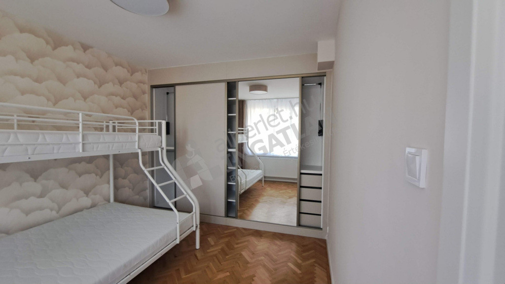 A lakáshoz tartozik egy önálló saját zárható egy autós garázs, az ára a bérleti díjon felül 30 000 forint és kötelezően fizetendő.