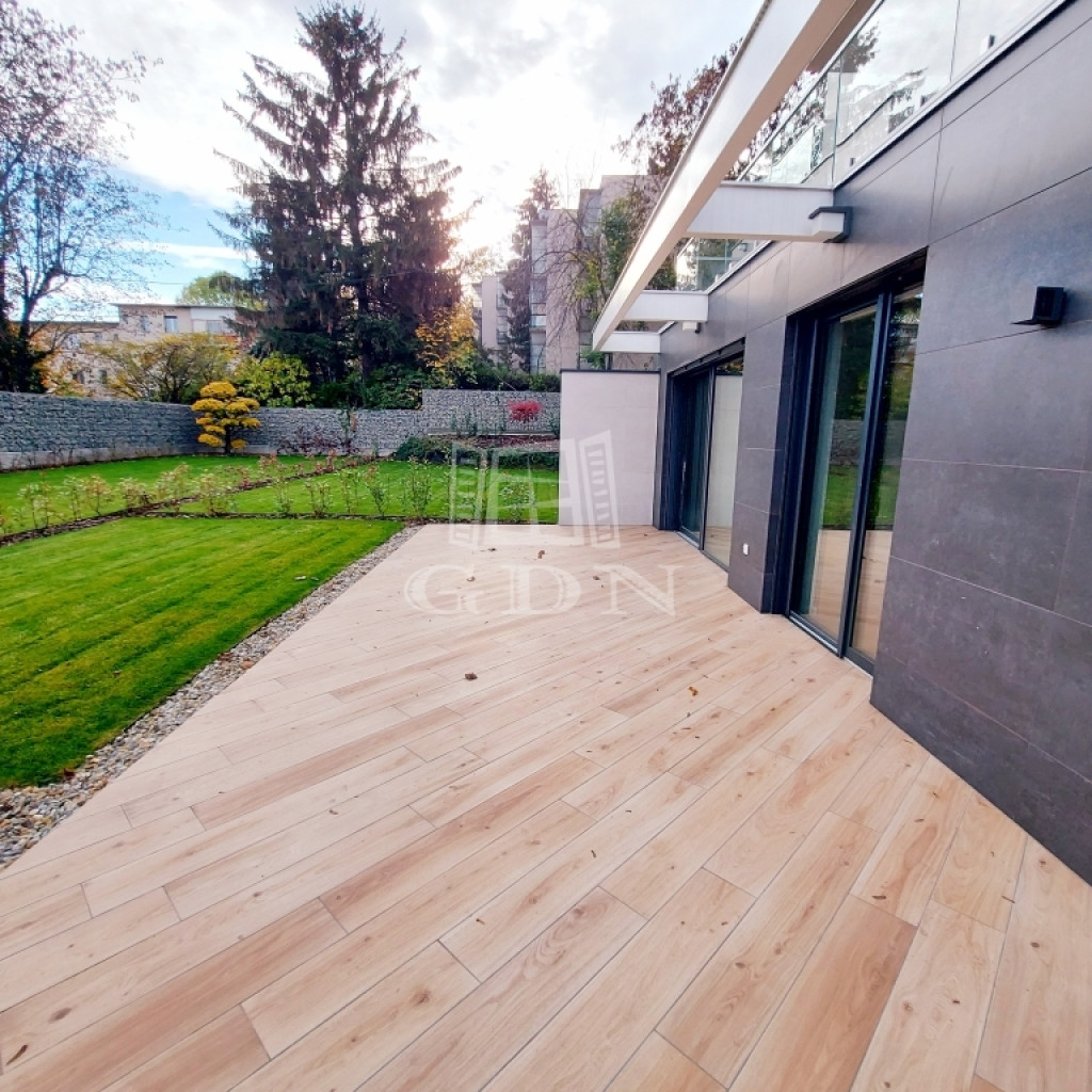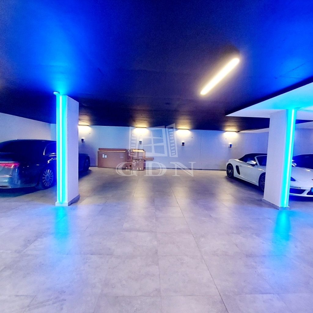 Az alagsorban található 22,4 nm-es teremgarázshely további ,valamint egy 8 nm-es tároló, a lakás 356 nm-es kizárólagos kerthasználattal rendelkezik.