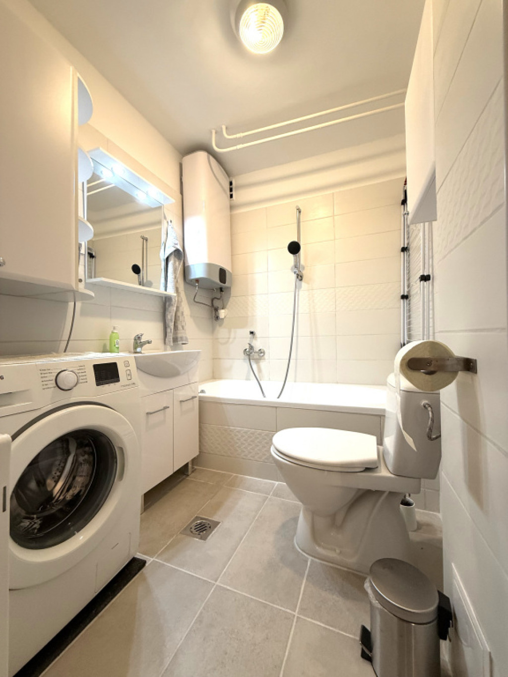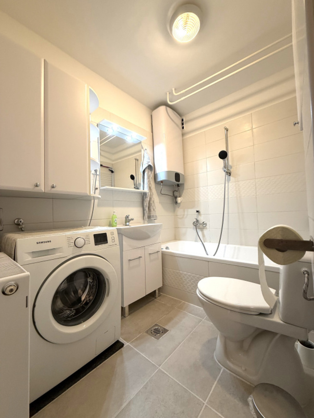 Kiadásra kínálok egy felújított, bútorozott, gépesített 28 m2 alapterületű egy szobás társasházi lakást. A ház tégla építésű, kis lakóközösségű elő és saját belső zöld zárt kerttel. A szoba előkertre, utcára néző, franciaággyal, szekrénysorral. A konyha konyhabútorral, indukciós főzőlappal, hűtővel, mikrohullámú sütővel felszerelt. A fürdőszoba mosdóval, káddal, mosógéppel felszerelt, a toalettel egy helységben kapott helyet. A közlekedőben egy beépített polcos szekrény került. A lakáshoz tartozik egy közös tároló. A házban egy közös használatú belső zöld kert van. A lakás teljeskörű felújításon esett át, új villamos hálózat, vízvezetékek, szaniterek kerültek beszerelésre, új burkolatot kapott, műanyag hangszigetelt ablakok kerültek beszerelésre redőnnyel, acél biztonsági ajtóval. Az otthon melegéről egyedi méréssel házközponti fűtés gondoskodik, a meleg víz villany bojlerrel megoldott. A lakás szekrénysorral, francia ággyal, éjjeli és tároló szekrényekkel bútorozott, mosógéppel, hűtővel, mikrohullámú sütővel gépesített. A közös költség : 14.000 Ft.
