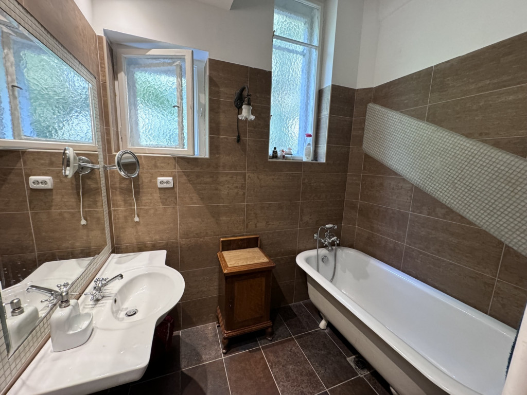 WC a fürdőszobában s külön is található, a fürdő kádas, a konyha önálló, gépesített, mosógéppel is felszerelt.