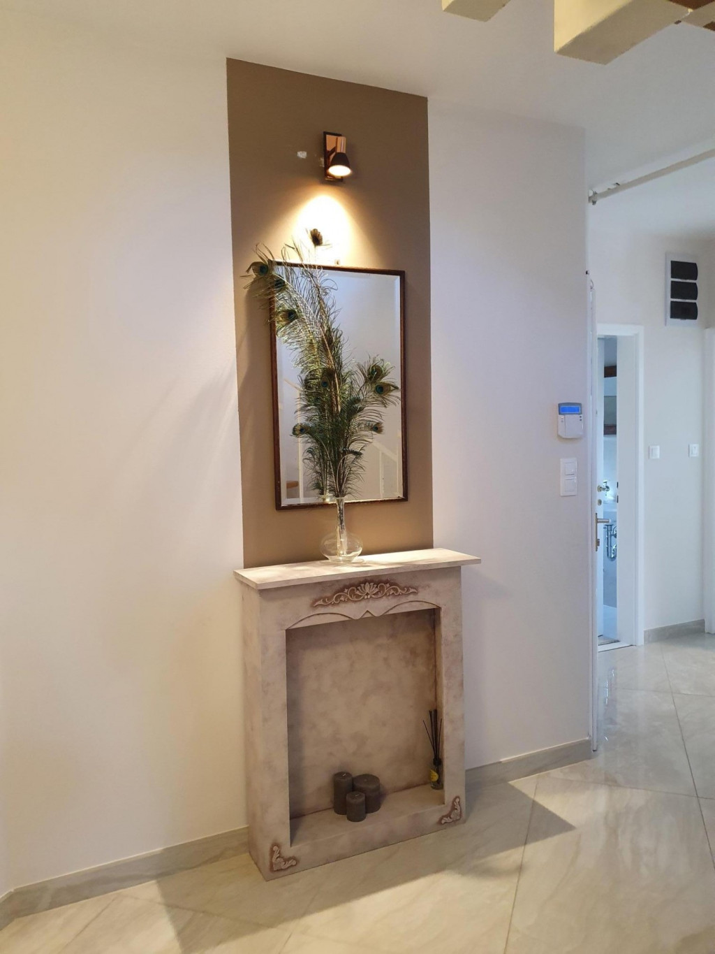 a felső szinten egy 40m-es, galéria jellegű szoba lett kialakítva.