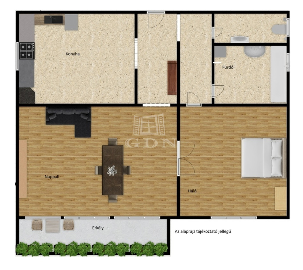 Az ingatlanhoz tartozik egy 4 négyzetméteres erkély is, ami tökéletes helyszín a kikapcsolódásra.