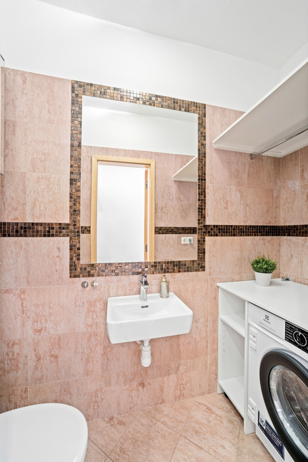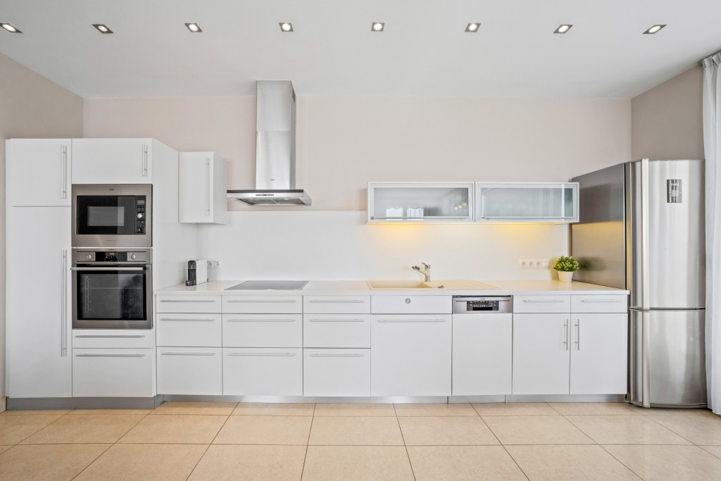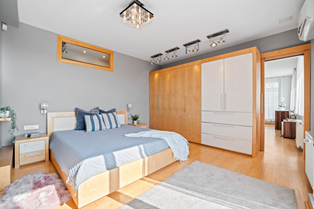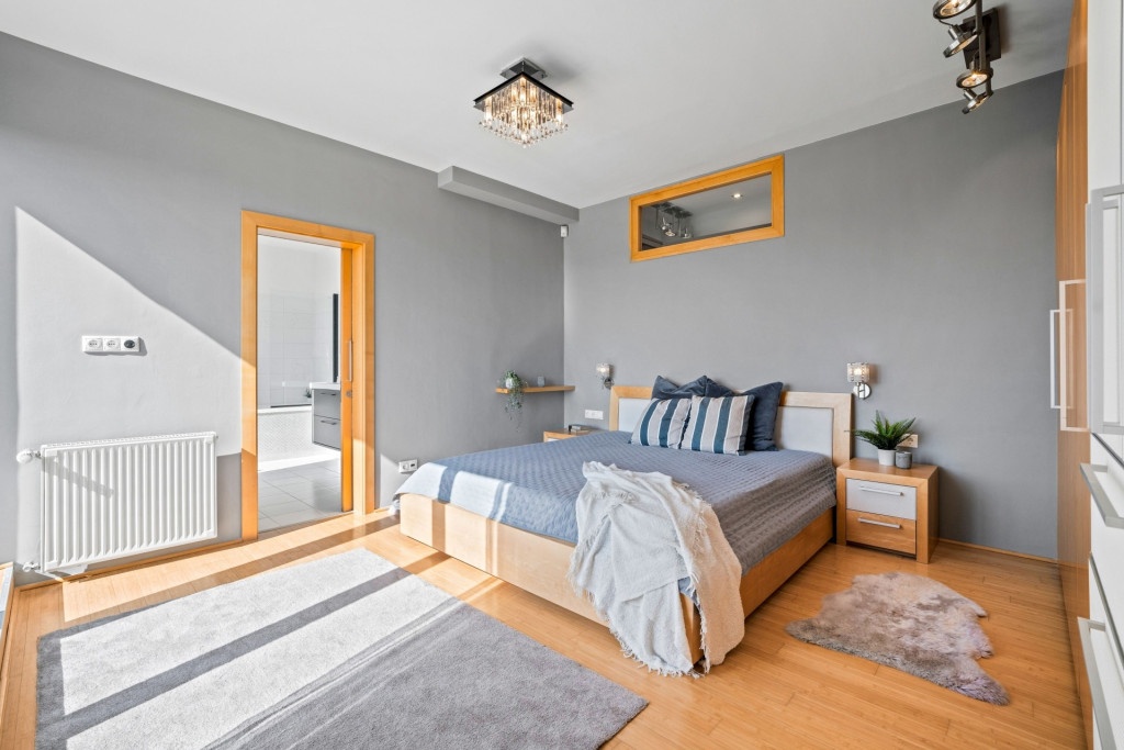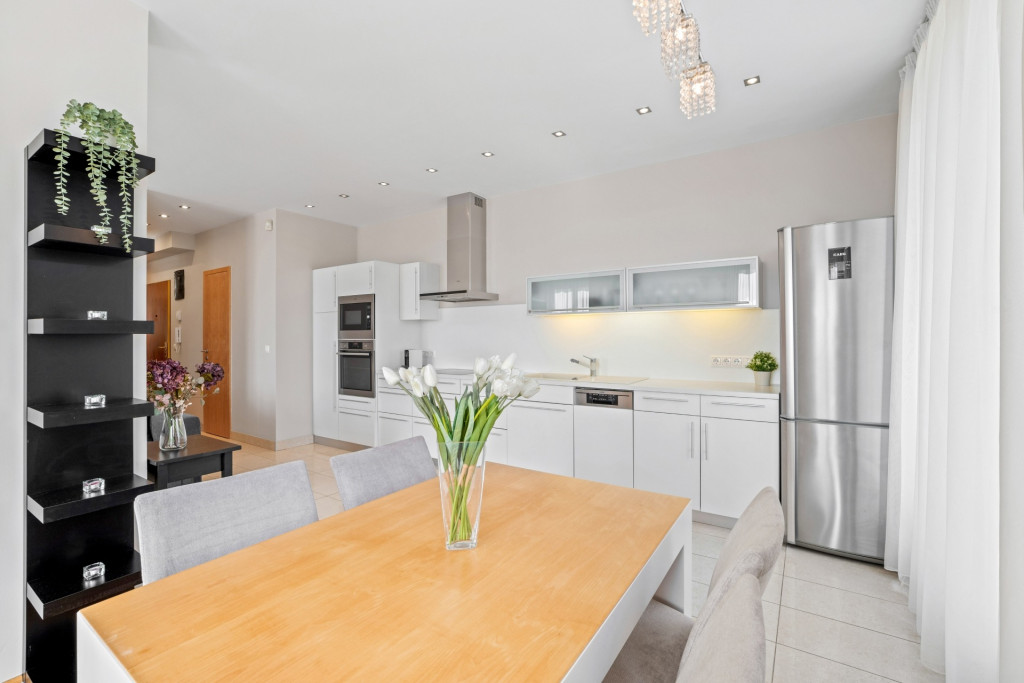 A lakás teljesen bútorozott és gépesített, klimatizált, minden ablak redőnnyel felszerelt, a tetőteraszon pedig árnyékoló gondoskodik a kellemes használatról a nyári hónapokban is.