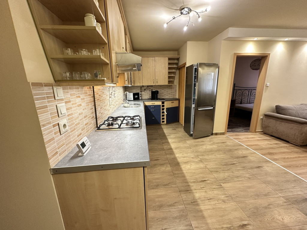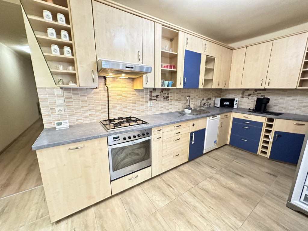 RÉSZBEN BÚTOROZOTT ÉS GÉPESÍTETT: beépített sütő , hűtő, mosogatogép, mosógép + a fotókon látható bútorok