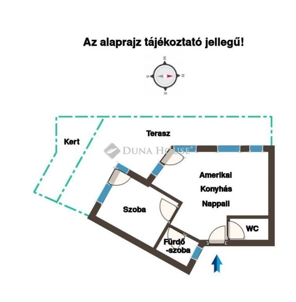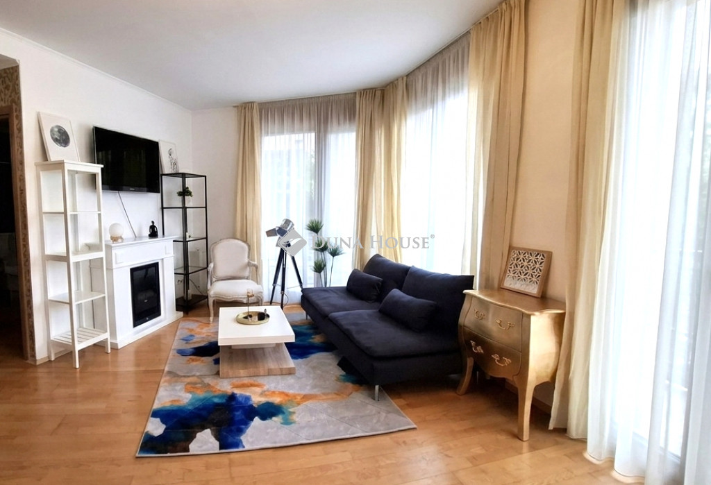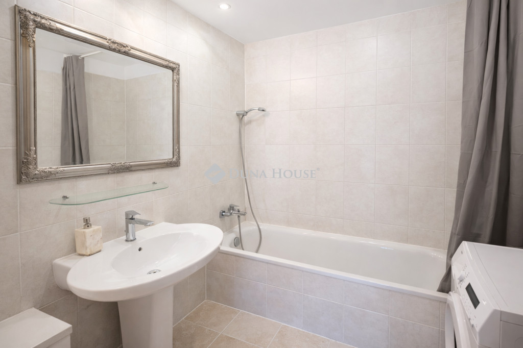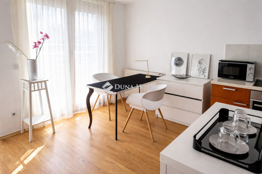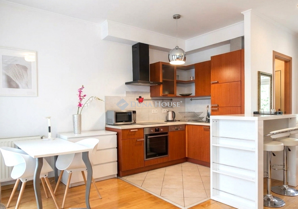 A lakás praktikus elosztású: amerikai konyhás nappali, külön hálószoba, tágas fürdőszoba, valamint külön WC. A konyha teljesen gépesített (főzőlap, sütő, elszívó, mosogatógép, hűtő), a lakás pedig teljes körűen bútorozott, így azonnal költözhető.