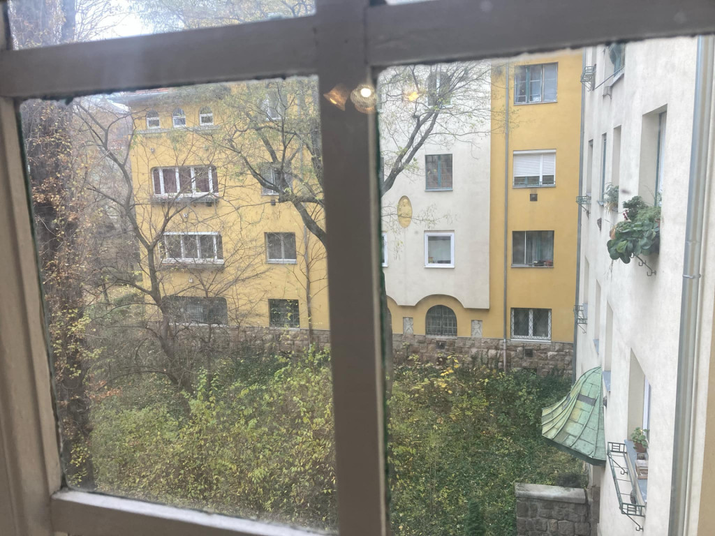 A Lehel és a Dózsa György út kereszteződésénél kiadó egy 2.emeleti (lift van), 42 négyzetméteres, 1 szobás, bútorozott és gépesített lakás. A szoba ablakai belső kertre néznek.